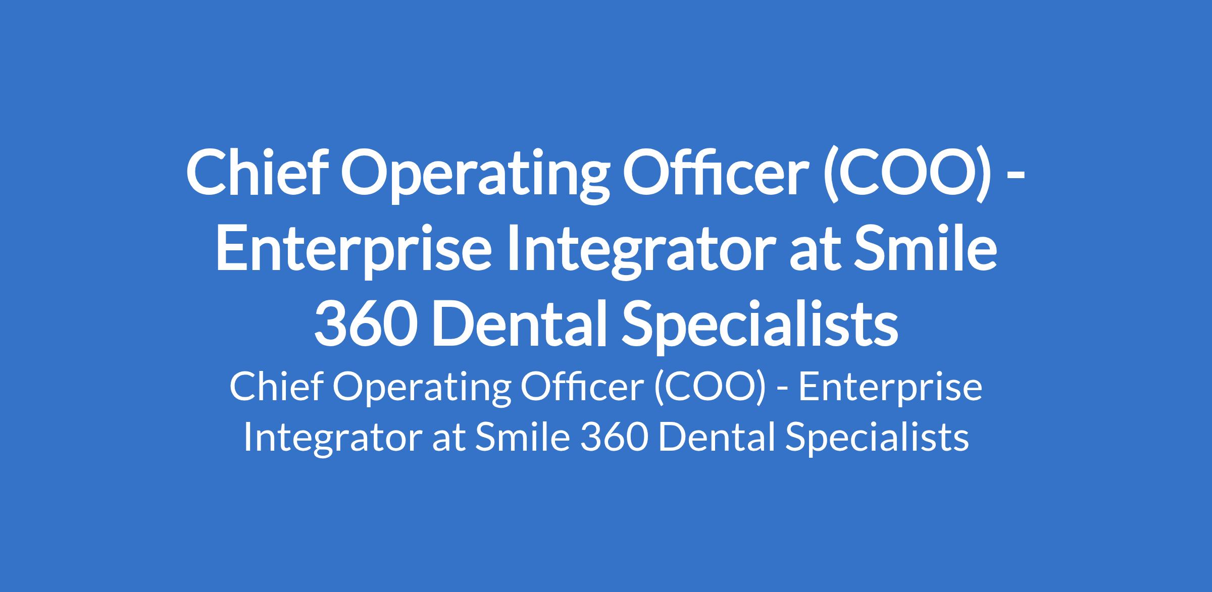 Smile 360 Dental Specialists is recruiting to fill the position of: Chief Operating Officer (COO) Enterprise Integrator. The position is located in Ikoyi, Lagos State. Interested candidates should possess a Bachelor's Degree with 1215 years of progressive leadership experience.