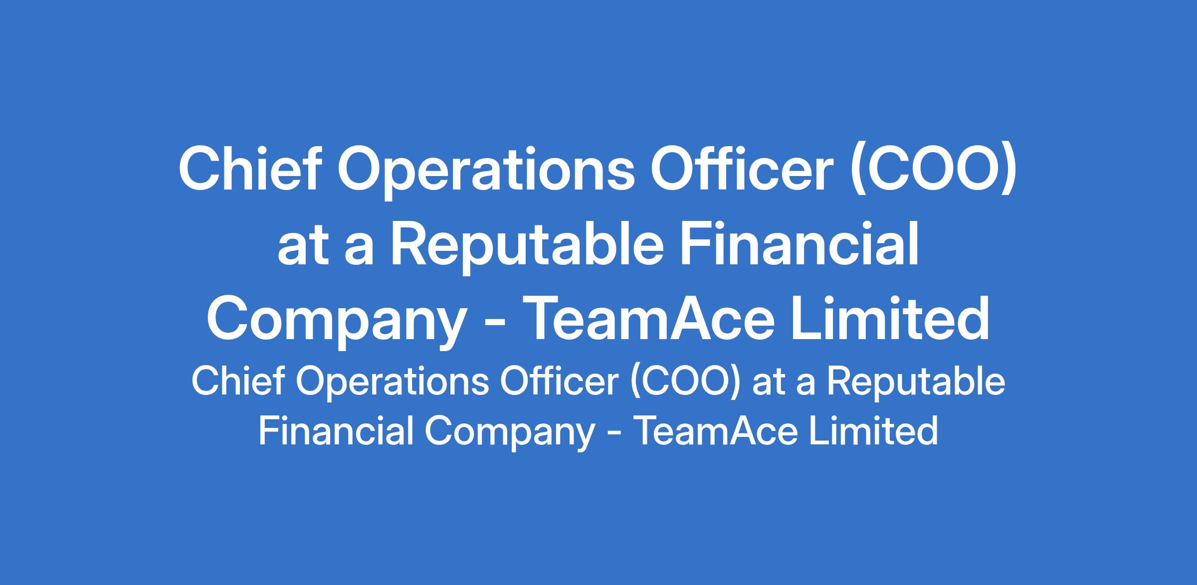 TeamAce Limited - Our client, a reputable organization in the financial services sector is recruiting to fill the position of: Chief Operations Officer (COO). The position is located in Victoria Island, Lagos State. Salary: NGN 2,250,000 NGN 2,700,000 monthly. Interested candidates should possess a Bachelor's Degree in Business Administration, Finance, Engineering, or a related field with a minimum of 10 years experience, with at least 5 years in a senior operations leadership role within financial services.