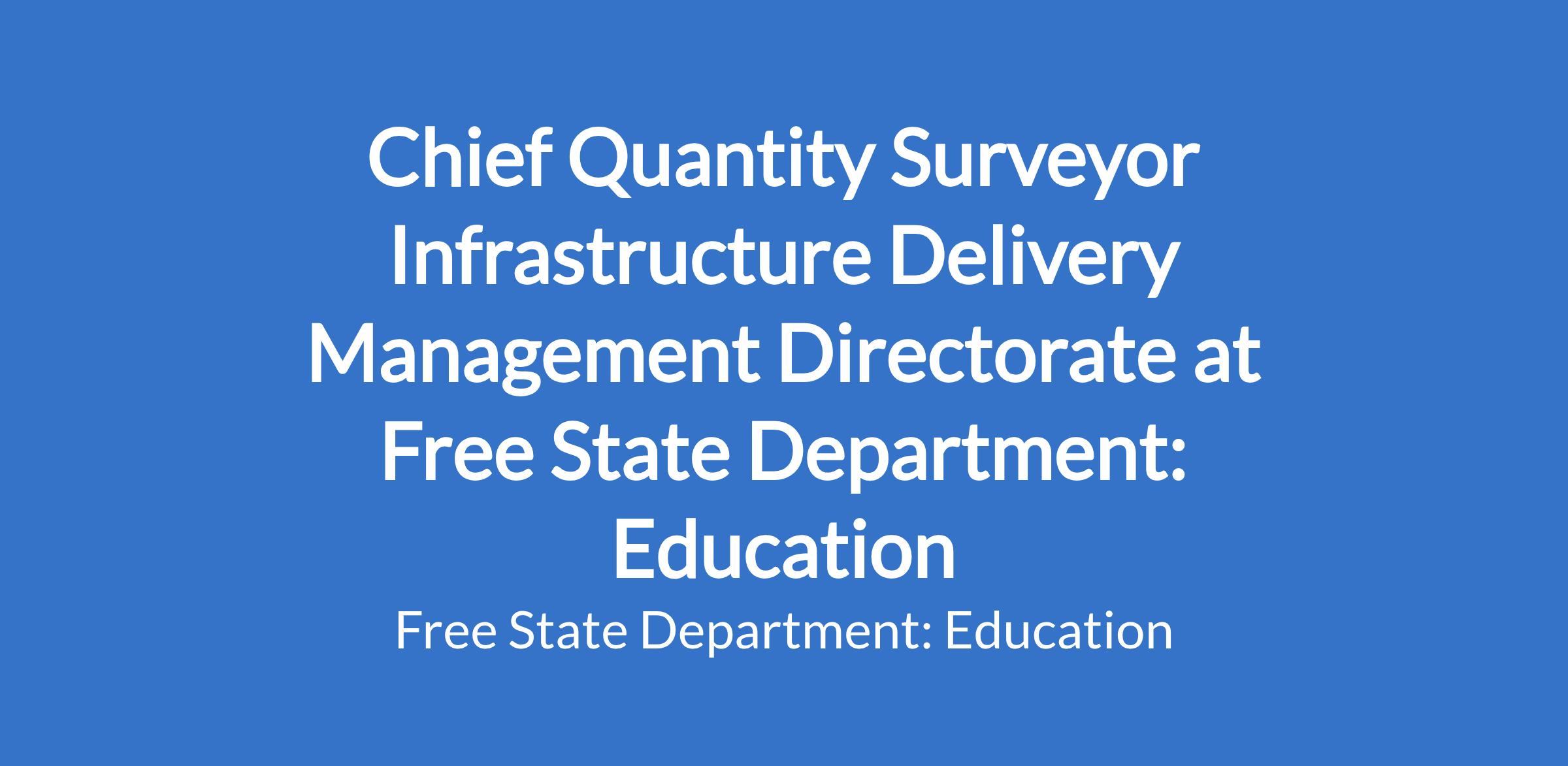 University degree in Quantity Surveying and/or equivalent qualification. Registered as a Professional Quantity Surveyor with SACQSP. Valid drivers licence. Computer literacy. Certificate Course in Infrastructure Delivery Management Minimum of Six years' experience post qualification.