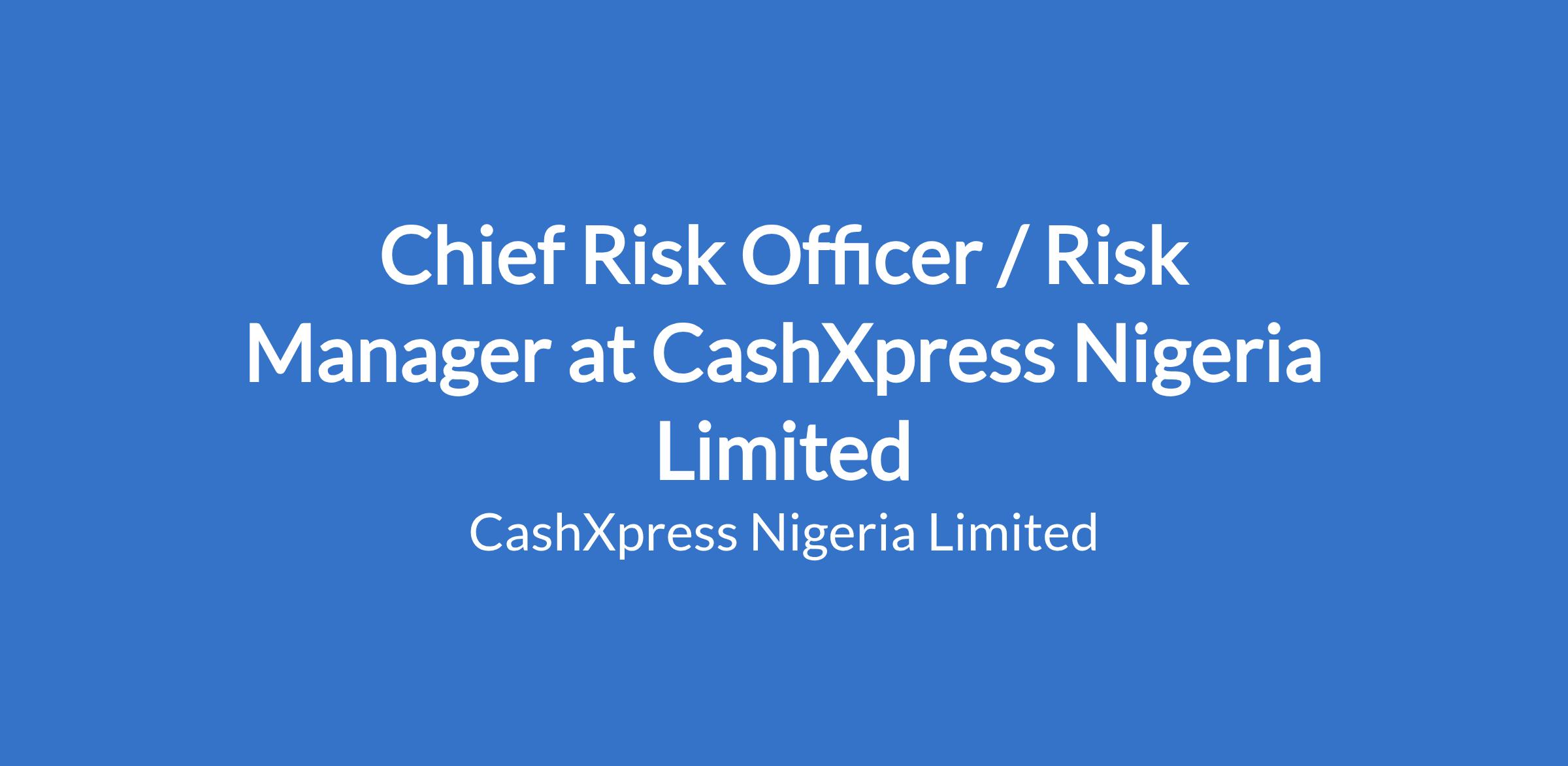 The Risk Manager is responsible for designing, implementing, and continuously improving the end-to-end risk framework for CashXpress Nigeria.