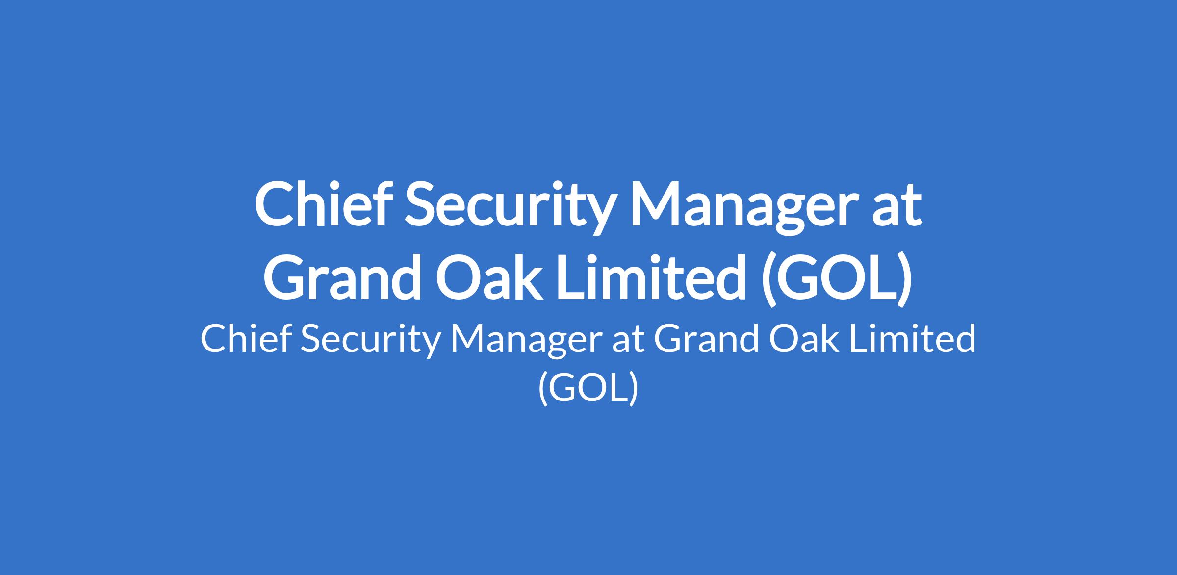 Chief Security Manager at Grand Oak Limited (GOL)