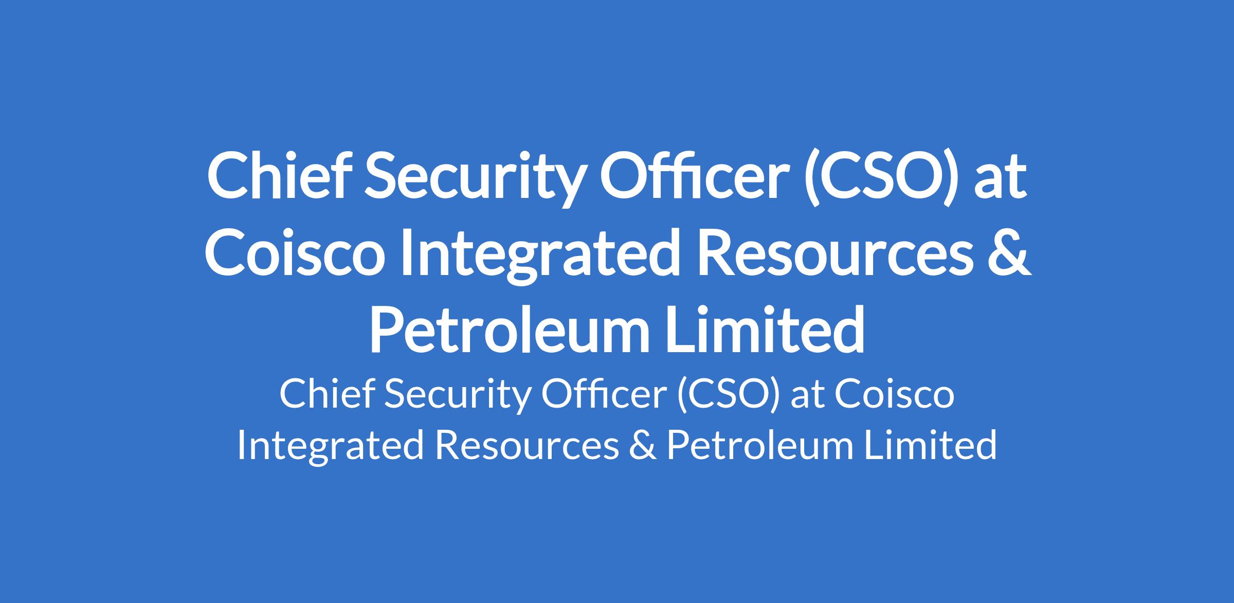 Coisco Integrated Resources & Petroleum Limited is recruiting to fill the position of: Chief Security Officer (CSO). The position is located in Ogbaku, Mbaitoli, Imo State. Interested candidates should possess a minimum of HND / BSc in Criminology, Security Studies, or related field (or equivalent experience) with a minimum of 4 years proven experience in security operations, with at least 2 years in a supervisory or managerial role.