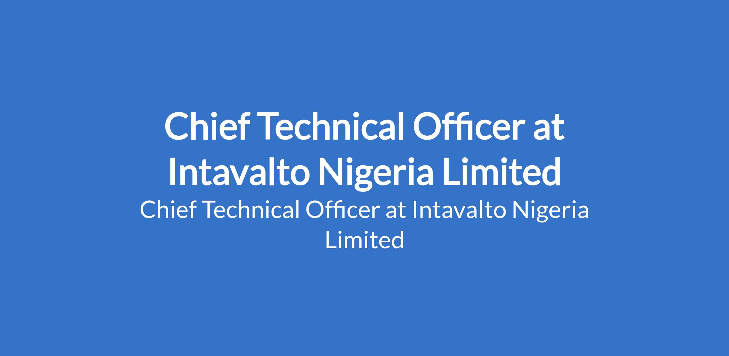 Intavalto Nigeria Limited is recruiting to fill the position of: Chief Technical Officer. The position is located in Abuja. Interested candidates should possess a relevant qualification with 7 to 15 years of experience in renewable energy engineering.