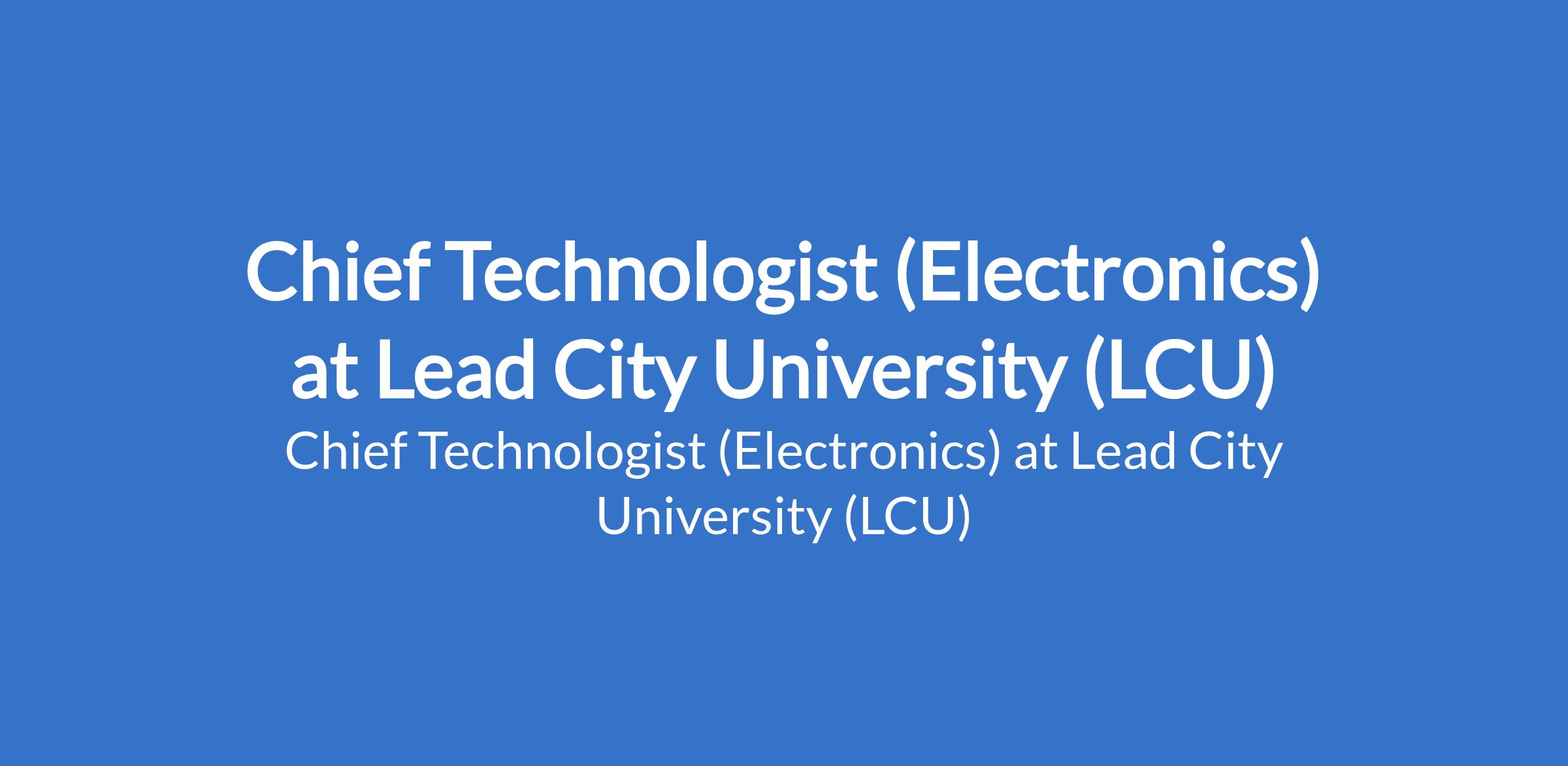 Lead City University (LCU) invites applications from suitable candidates to fill the position of: Chief Technologist (Electronics). The position is located in Ibadan, Oyo State. Interested candidates should possess a good First Degree, not below second class lower division or Higher National Diploma (HND) from a reputable University/Institution and must possess a current practice license from the relevant Council/Regulatory Board.