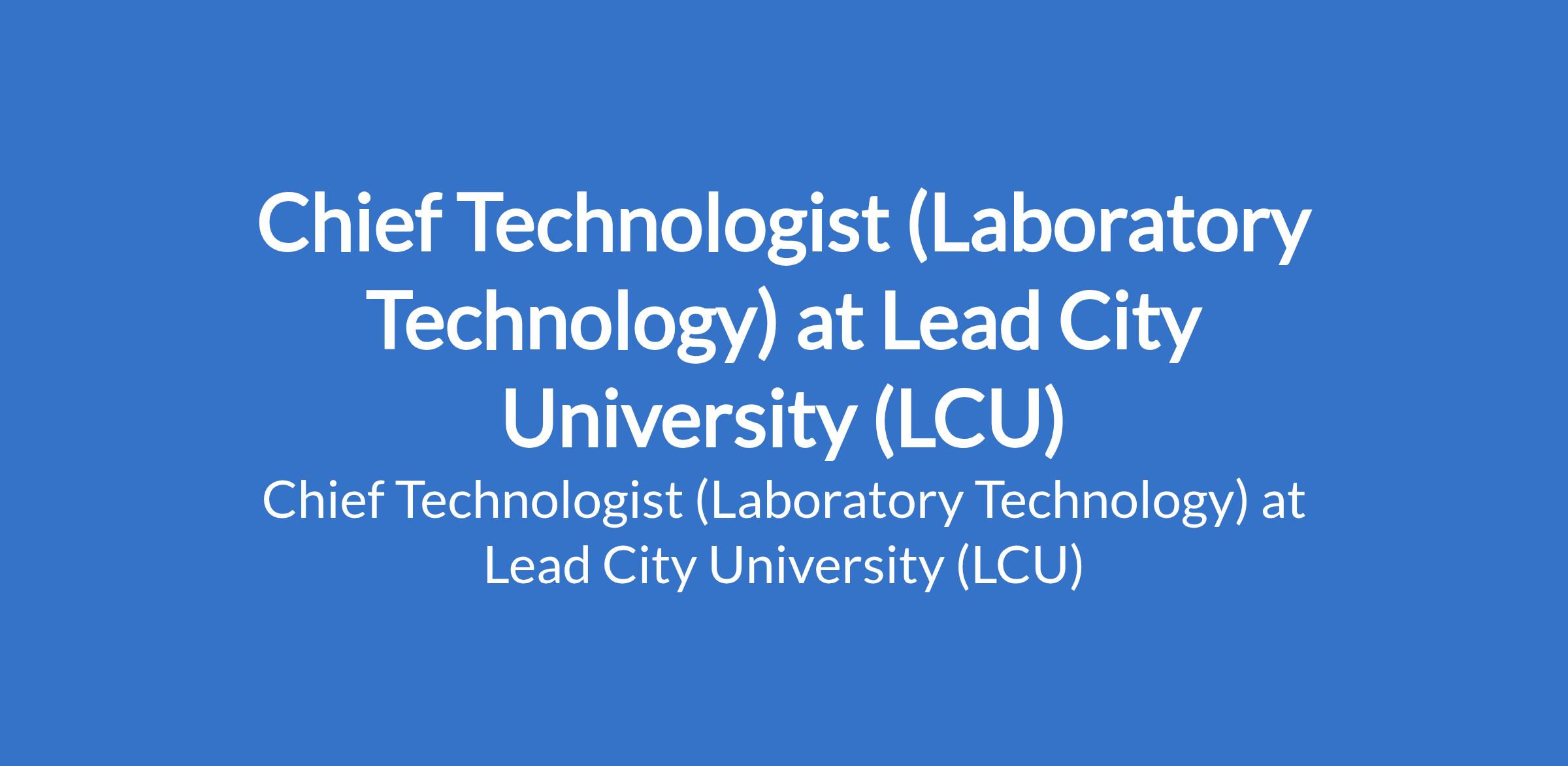Lead City University (LCU) invites applications from suitable candidates to fill the position of: Chief Technologist (Laboratory Technology). The position is located in Ibadan, Oyo State. Interested candidates should possess a good First Degree, not below second class lower division or Higher National Diploma (HND) from a reputable University/Institution and must possess a current practice license from the relevant Council/Regulatory Board.