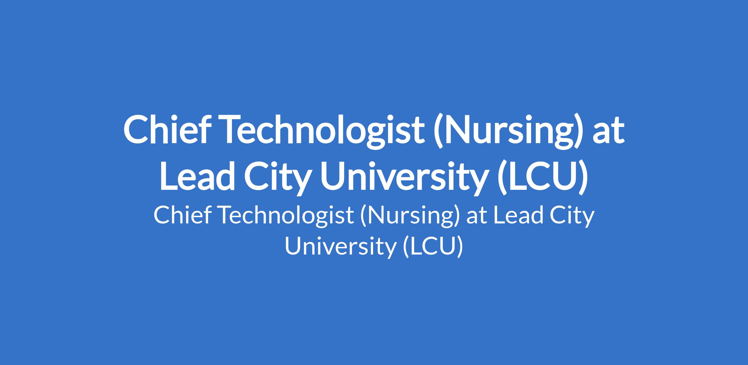 Lead City University (LCU) invites applications from suitable candidates to fill the position of: Chief Technologist (Nursing). The position is located in Ibadan, Oyo State. Interested candidates should possess a good First Degree, not below second class lower division or Higher National Diploma (HND) from a reputable University/Institution and must possess a current practice license from the relevant Council/Regulatory Board.
