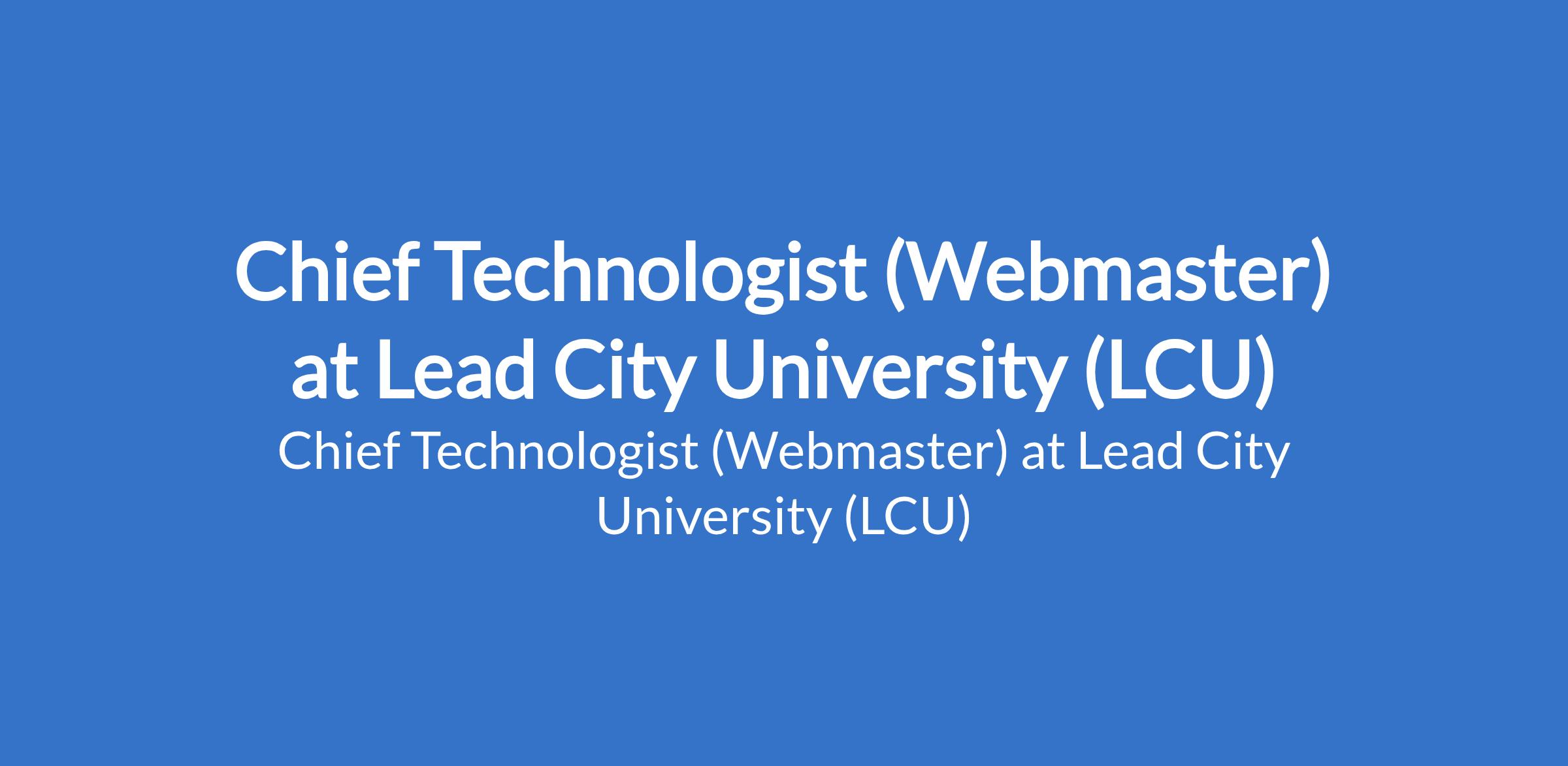 Lead City University (LCU) invites applications from suitable candidates to fill the position of: Chief Technologist (Webmaster). The position is located in Ibadan, Oyo State. Interested candidates should possess a good First Degree, not below second class lower division or Higher National Diploma (HND) from a reputable University/Institution and must possess a current practice license from the relevant Council/Regulatory Board.