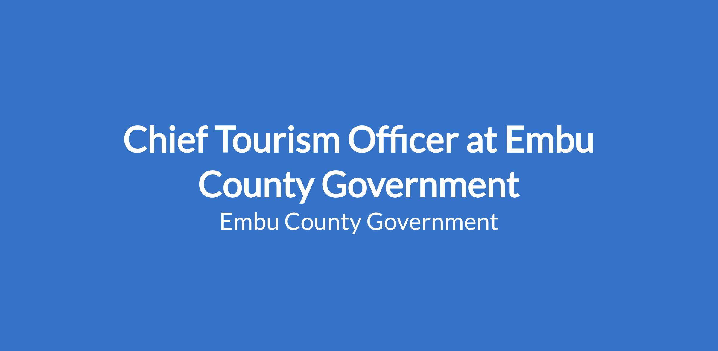 Chief Tourism Officer at Embu County Government