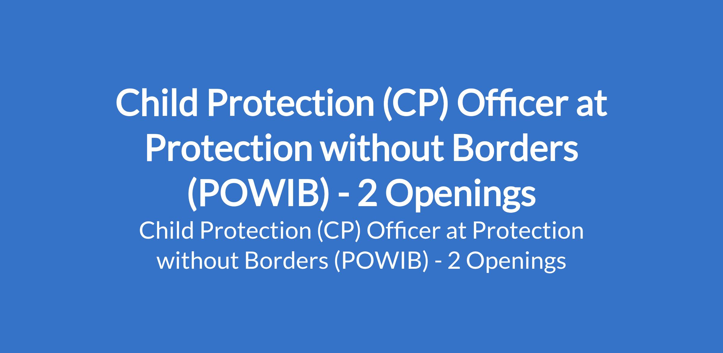 Protection without Borders (POWIB) is recruiting to fill the position of: Child Protection (CP) Officer. The position is located in Banki (Bama LGA) and Kaga LGA, Borno State. Interested candidates should possess relevant qualifications and experience.