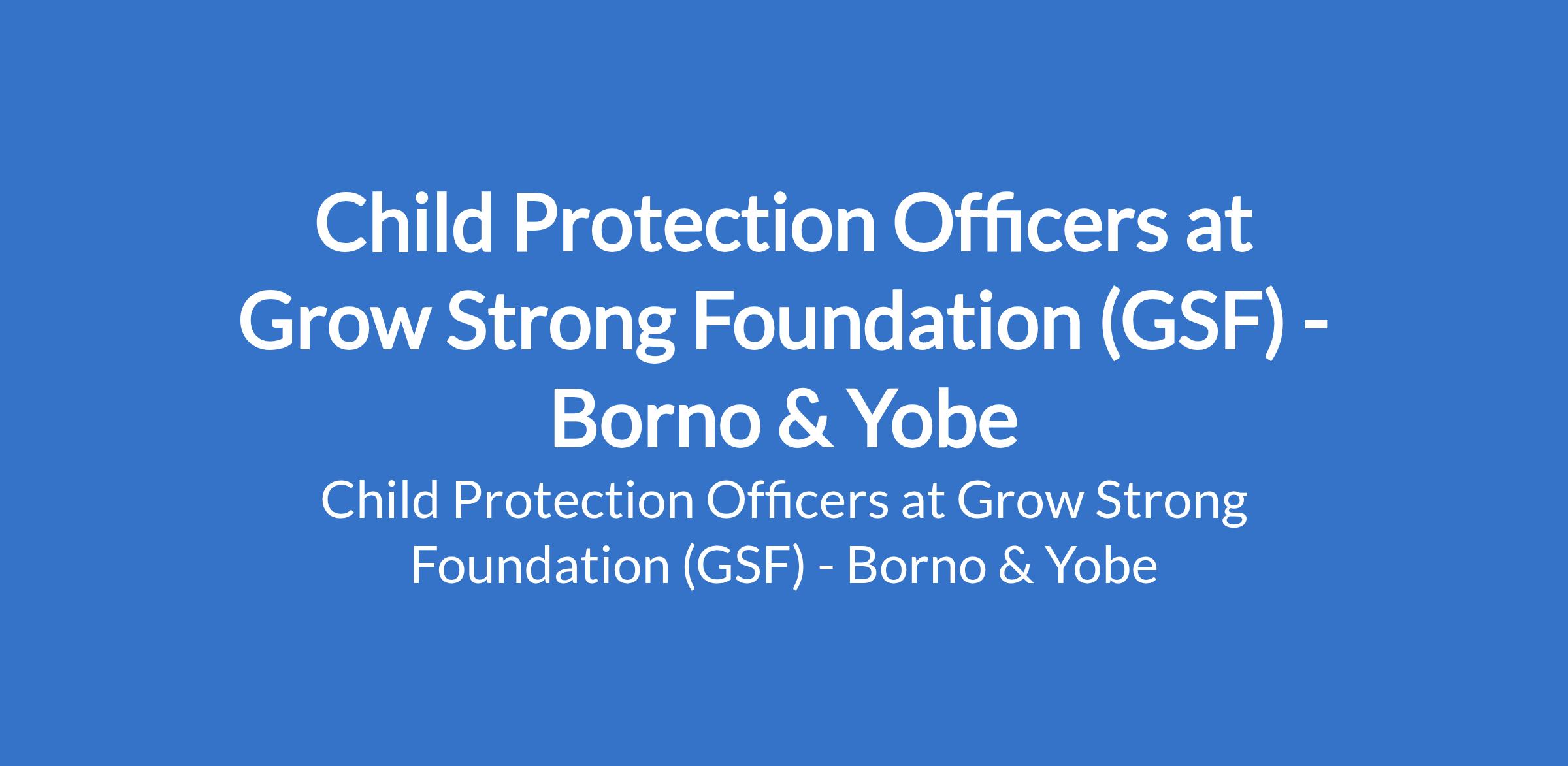 Grow Strong Foundation (GSF) is recruiting to fill the position of: Child Protection Officer. The position is located in Borno and Yobe States. Interested candidates should possess relevant qualifications.