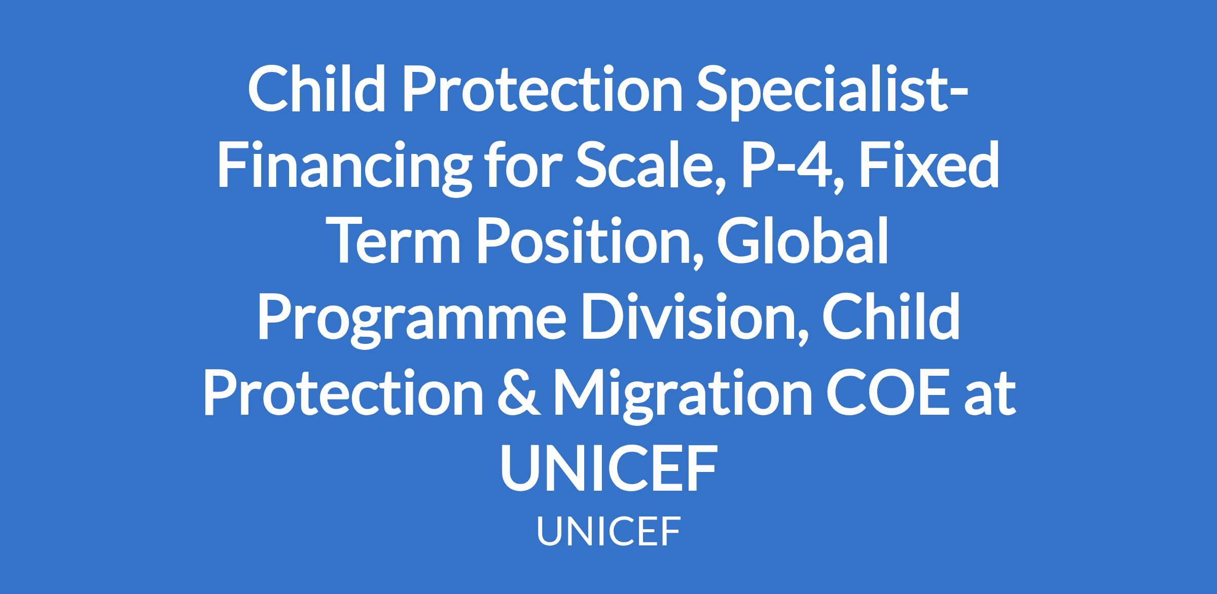 Child Protection Specialist- Financing for Scale, P-4, Fixed Term Position, Global Programme Division, Child Protection & Migration COE at UNICEF
