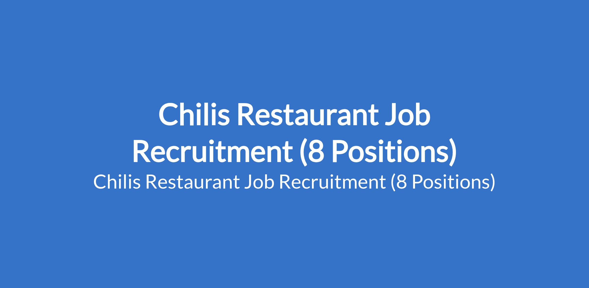 Chilis Restaurant is recruiting to fill the following positions in Oyo State: Cashier, Kitchen Accountant, Storekeeper, Quality Control Officer, and Kitchen Assistant.