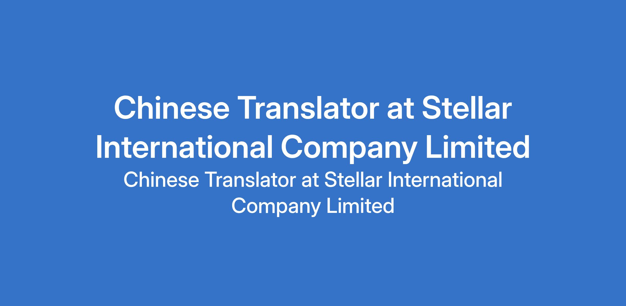 Stellar International Company Limited is recruiting to fill the position of: Chinese Translator. The position is located in Oregun-Ikeja, Lagos State. Interested candidates should possess a B.Sc / HND or above with HSK level 5 Certificate with at least 3 years of cognate experience in the same position.