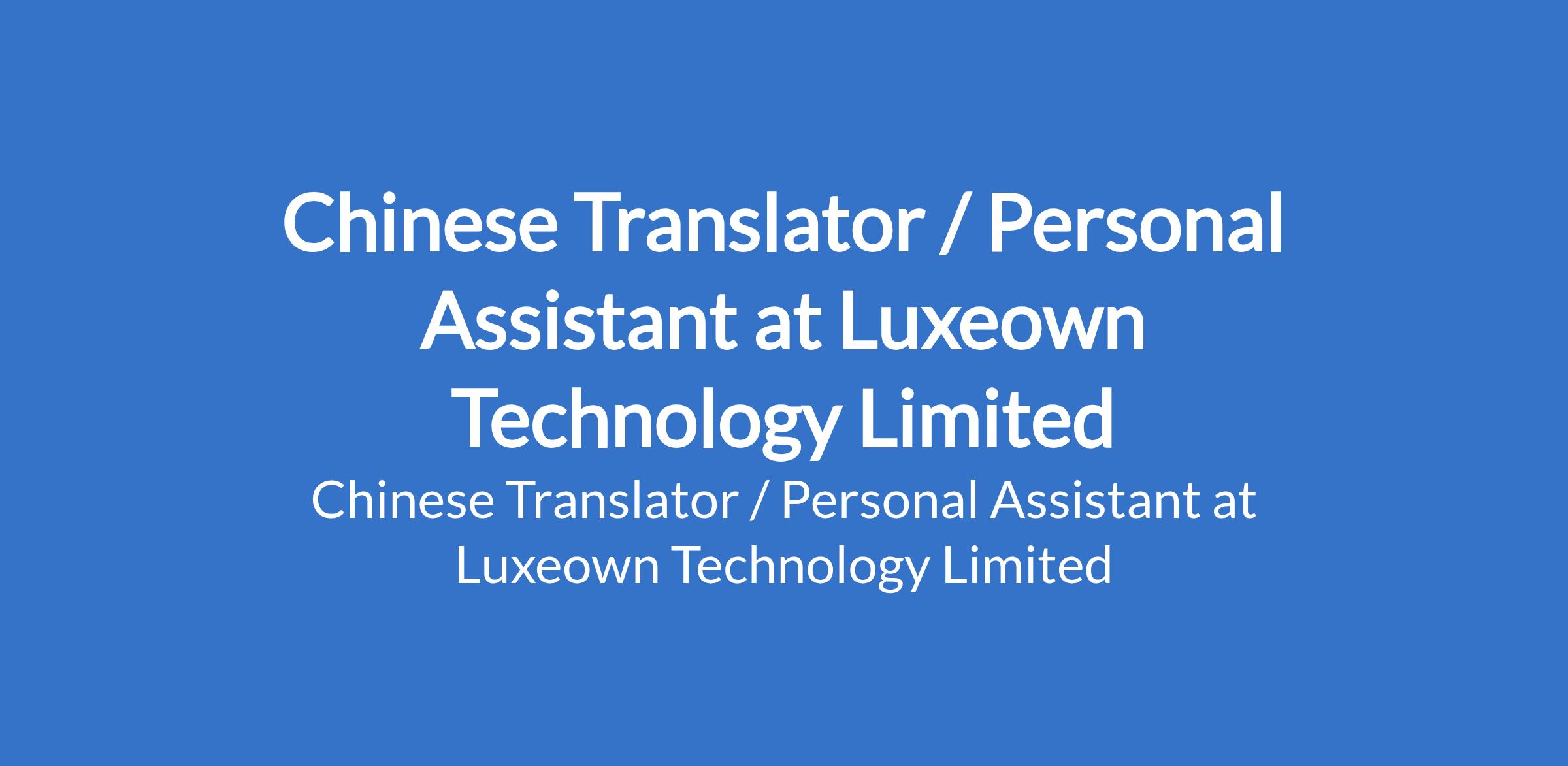 Luxeown Technology Limited is recruiting to fill the position of: Chinese Translator / Personal Assistant. The position is located in Ikeja, Lagos State. Salary: N400,000 - N800,000 monthly. Interested candidates should possess a Bachelor's Degree with a minimum of 1 year experience as a professional Translator. Fluent in both spoken and written Chinese and English and must reside in or be willing to work in Ikeja, Lagos.