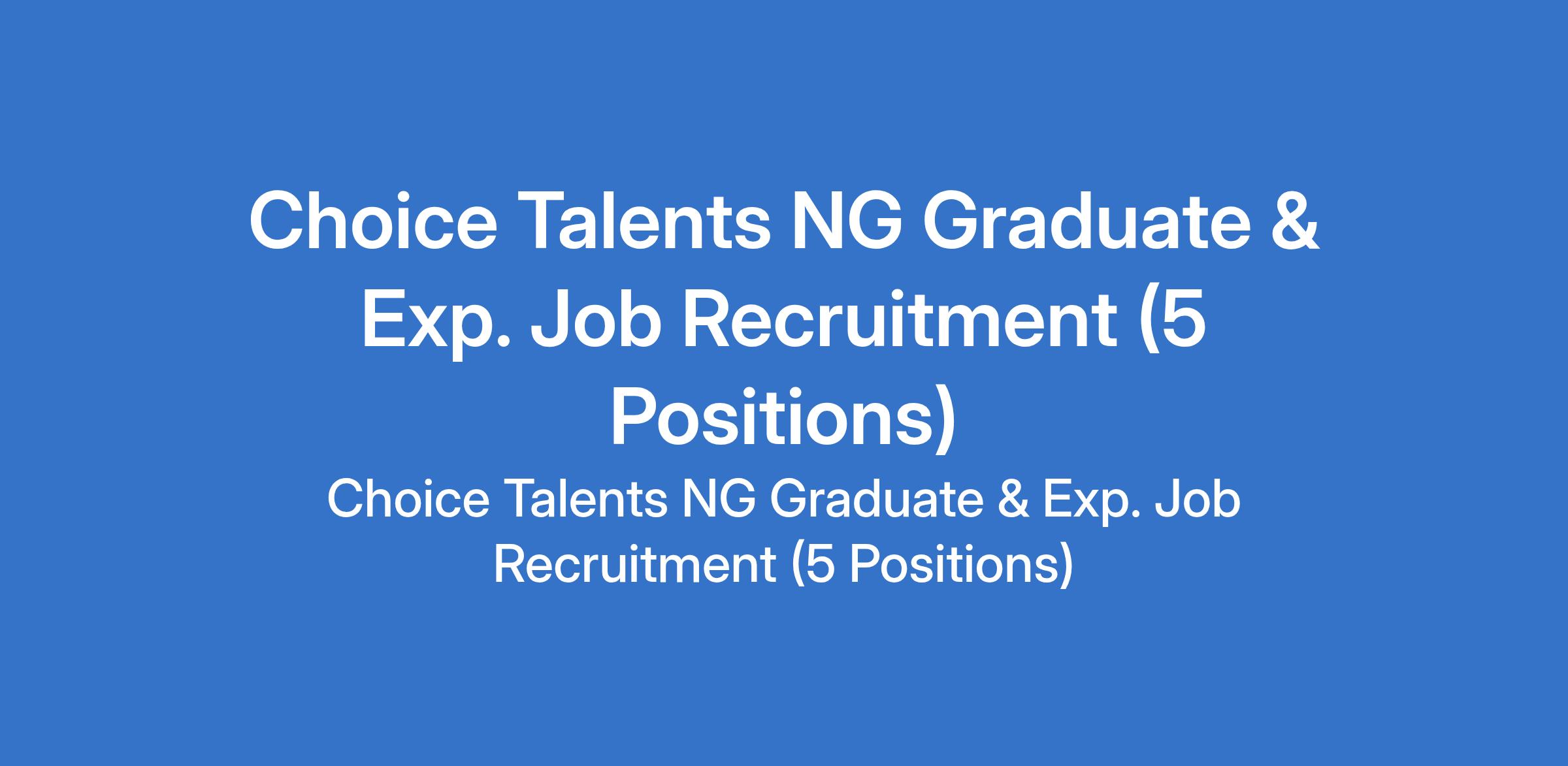 Choice Talents NG Graduate & Exp. Job Recruitment (5 Positions)