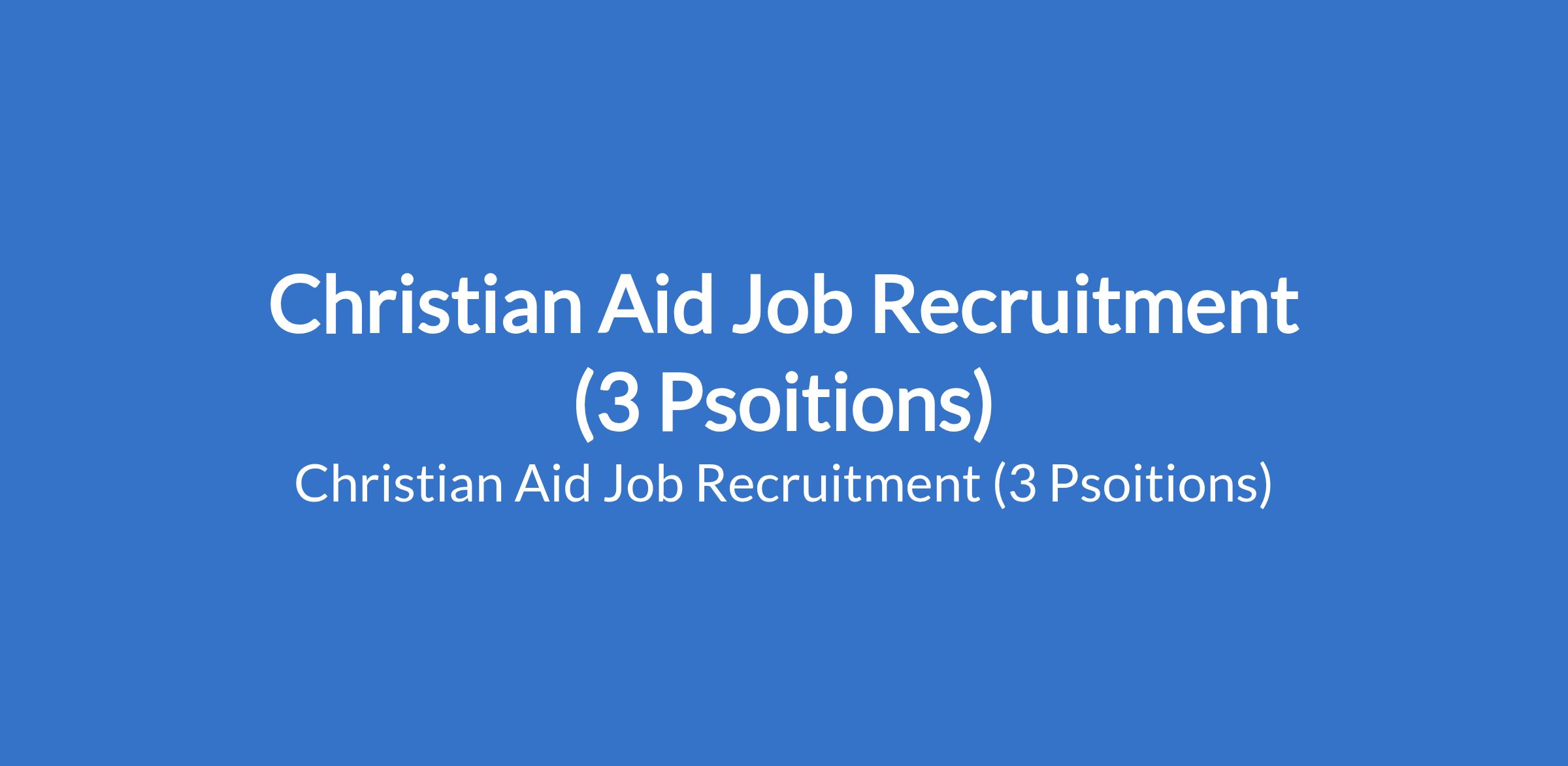 Christian Aid is recruiting suitably qualified candidates to fill the following positions in Abuja, Borno and Kano States: Programme Officer - ECHO, Finance Associate, and Project Manager - ECHO.