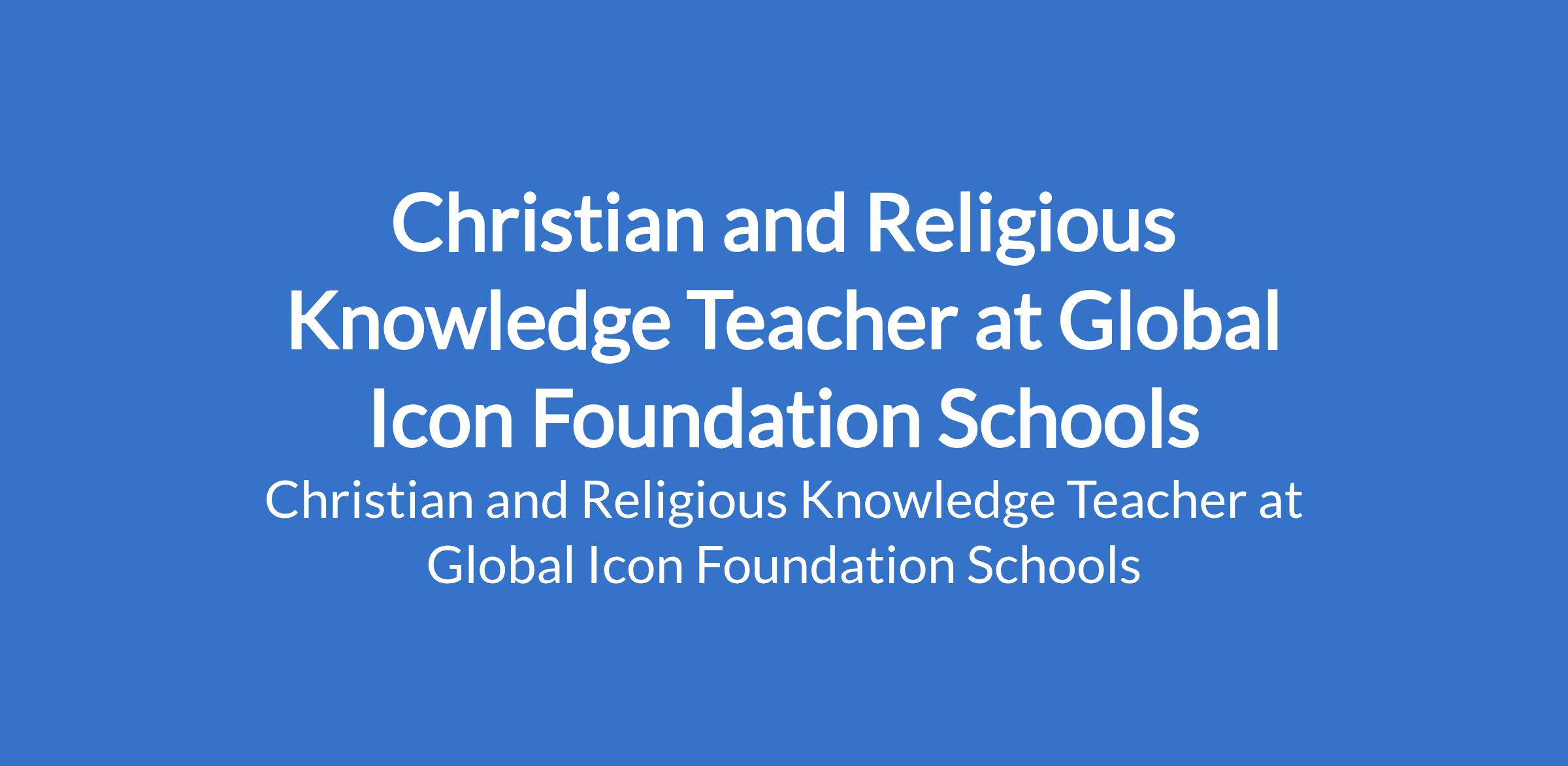 Christian and Religious Knowledge Teacher at Global Icon Foundation Schools