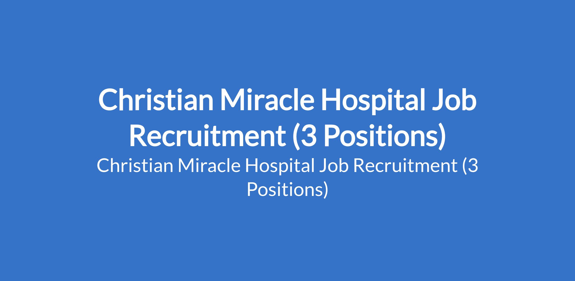 Christian Miracle Hospital Job Recruitment (3 Positions)