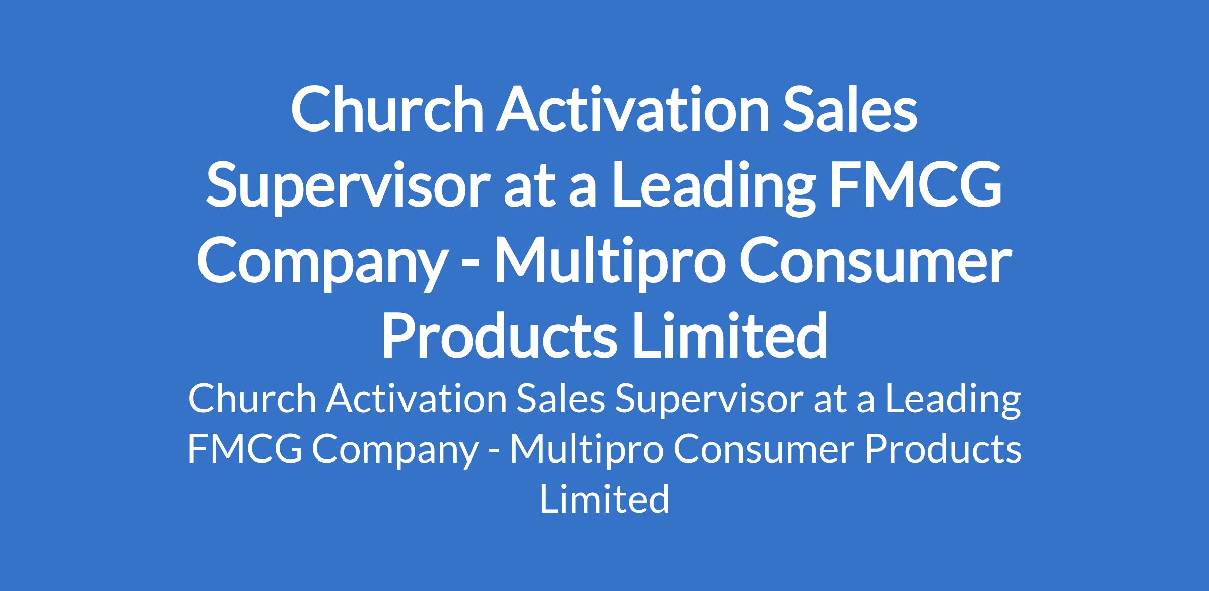 Multipro Consumer Products Limited - Our client, a Leading FMCG Company is recruiting to fill the position of: Church Activation Sales Supervisor. The position is located in Ikoyi, Lagos State. Interested candidates should possess relevant qualifications with 25 years experience in sales, field marketing, or activations (FMCG preferred).