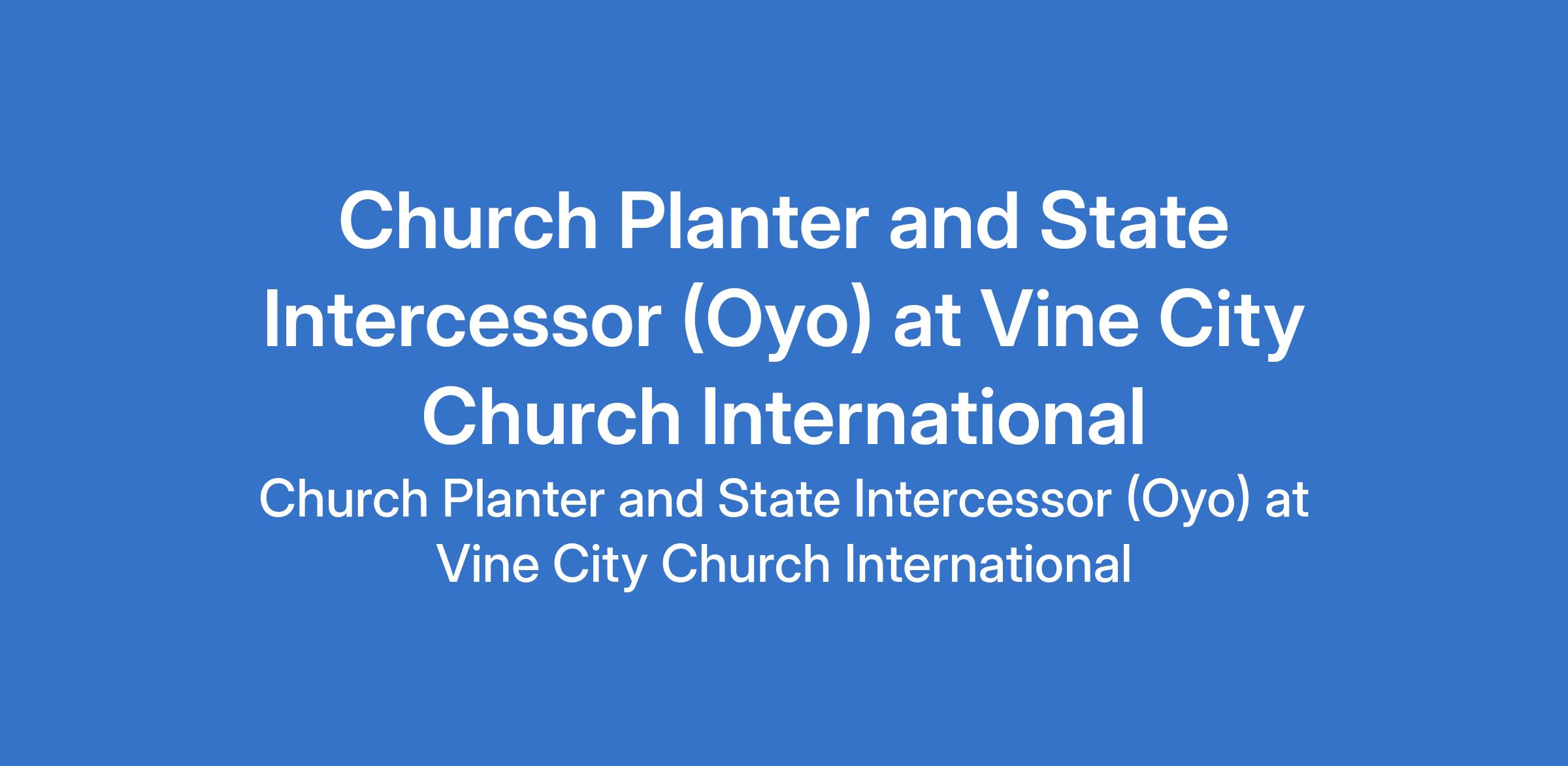 Vine City Church International is recruiting to fill the position of: Church Planter and State Intercessor. The position is located in Ibadan, Oyo State. Salary: N150,000 monthly. Interested candidate should possess a Bachelor`s Degree with 5 - 10 years experience and must be a born-again pastor with a passion for church planting.
