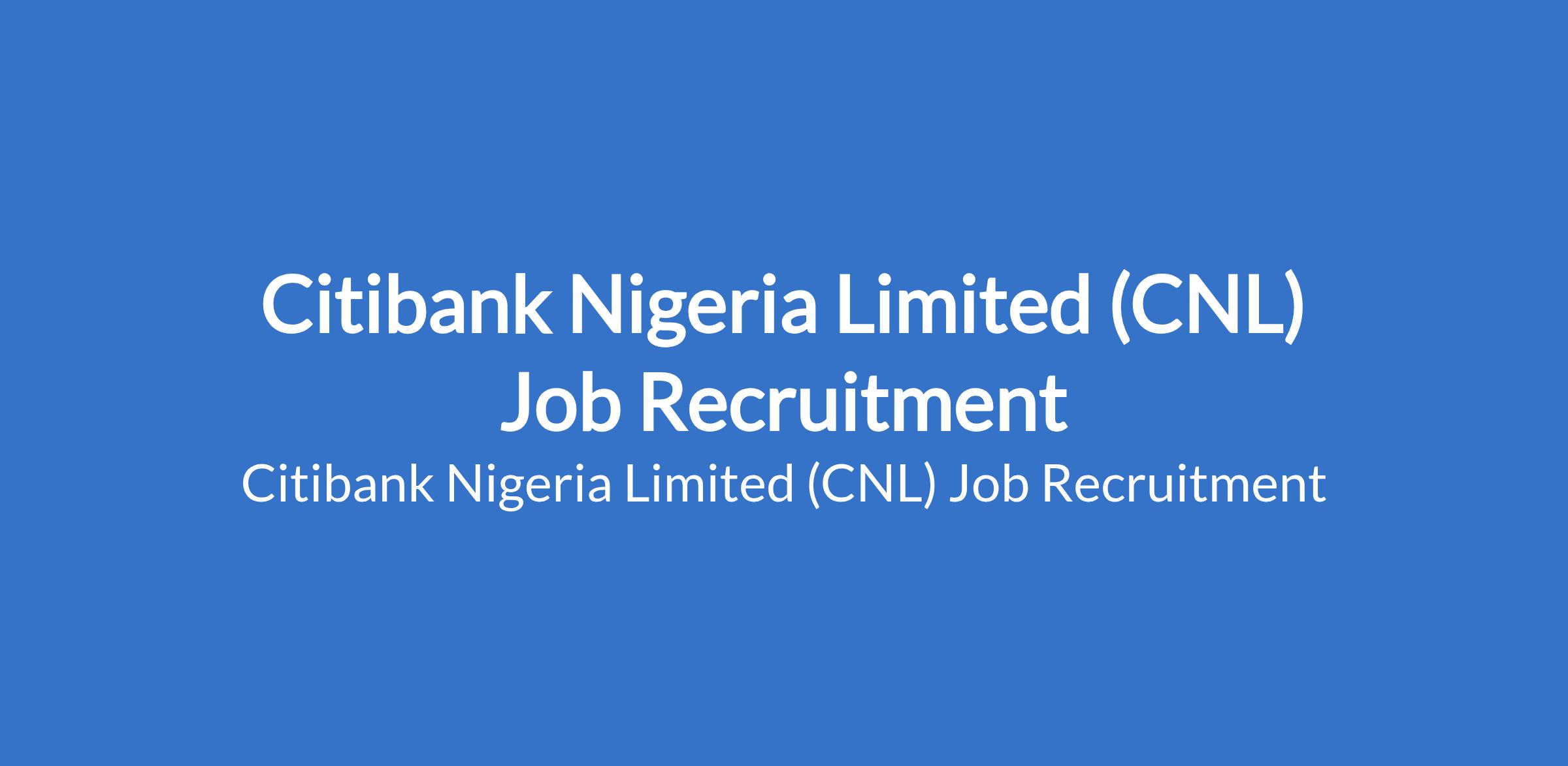 Citibank Nigeria Limited (CNL) Job Recruitment