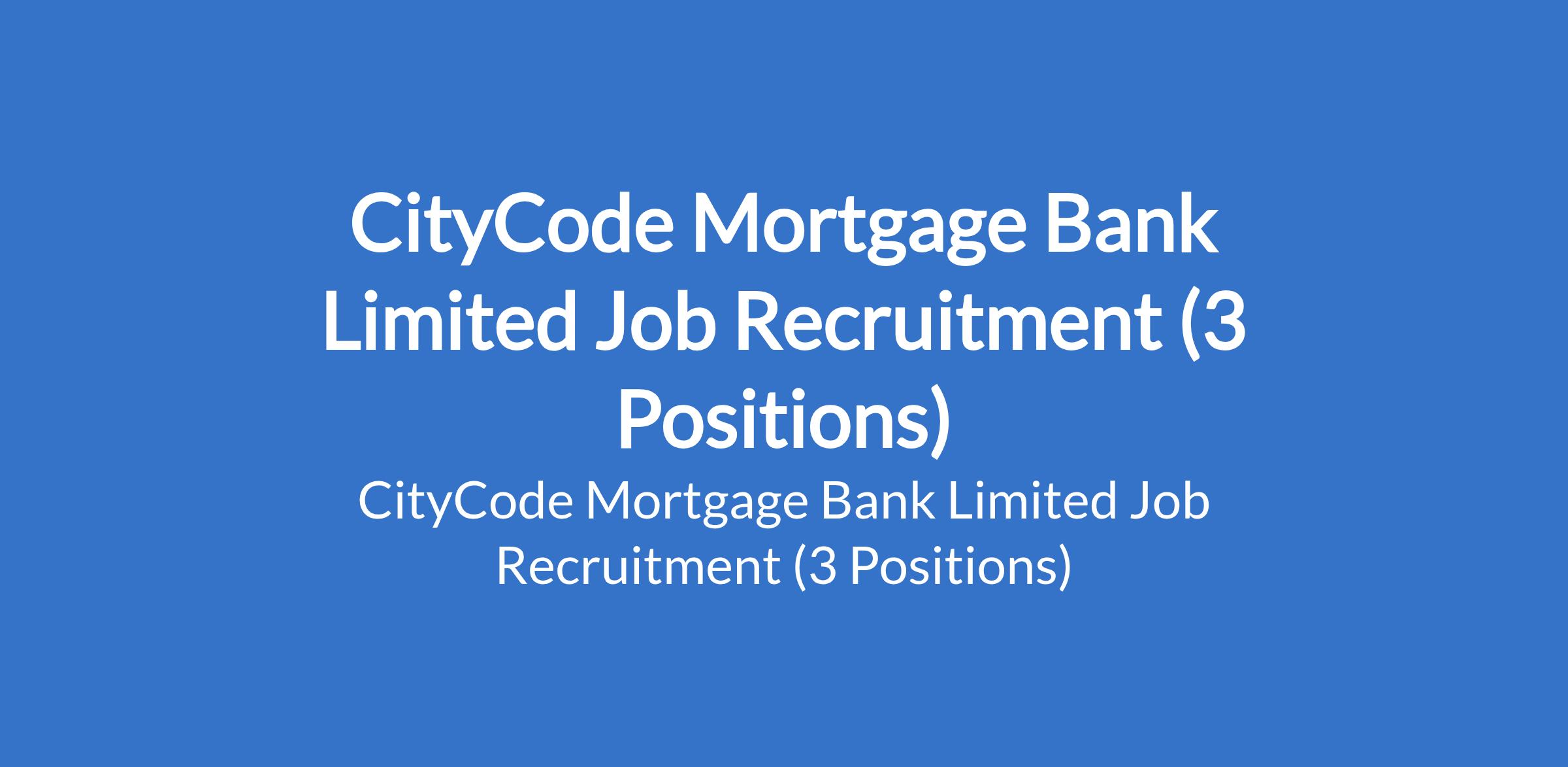 CityCode Mortgage Bank Limited Job Recruitment (3 Positions)