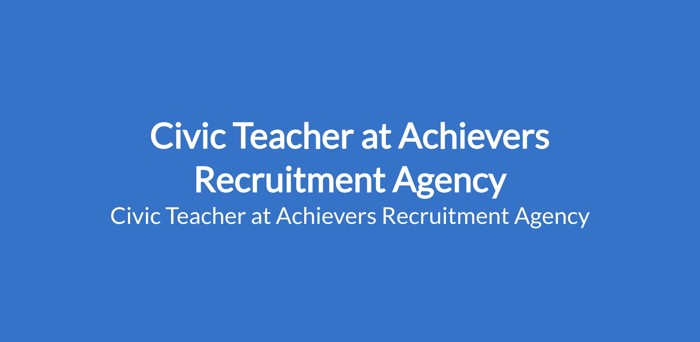 Achievers Recruitment Agency is recruiting to fill the position of: Civic Teacher. The position is located in Port Harcourt, Rivers State. Salary: N50,000 - N100,000 monthly. Interested candidates should possess an NCE / B.Ed Degree with relevant teaching experience (preferred).