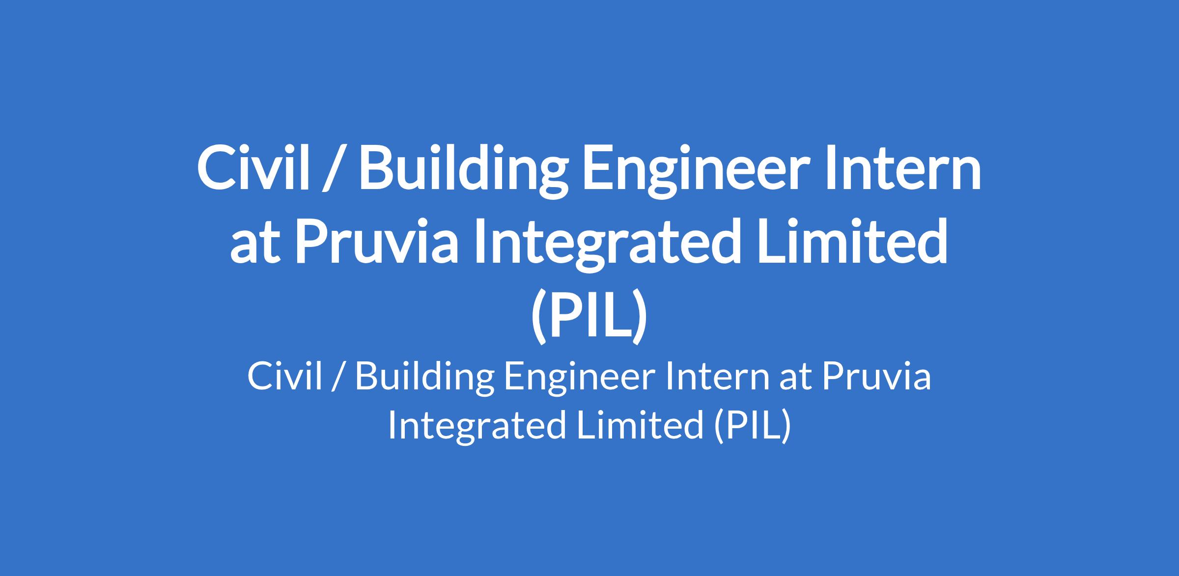 Pruvia Integrated Limited (PIL) is recruiting to fill the position of: Civil / Building Engineer Intern. The position is located in Ojodu, Berger - Lagos State. Salary: N60,000 monthly. Interested candidates should possess an ND, HND, or B.Sc Degree in Civil Engineering, Building Technology, or a related field and must reside within the Ojodu Berger axis.