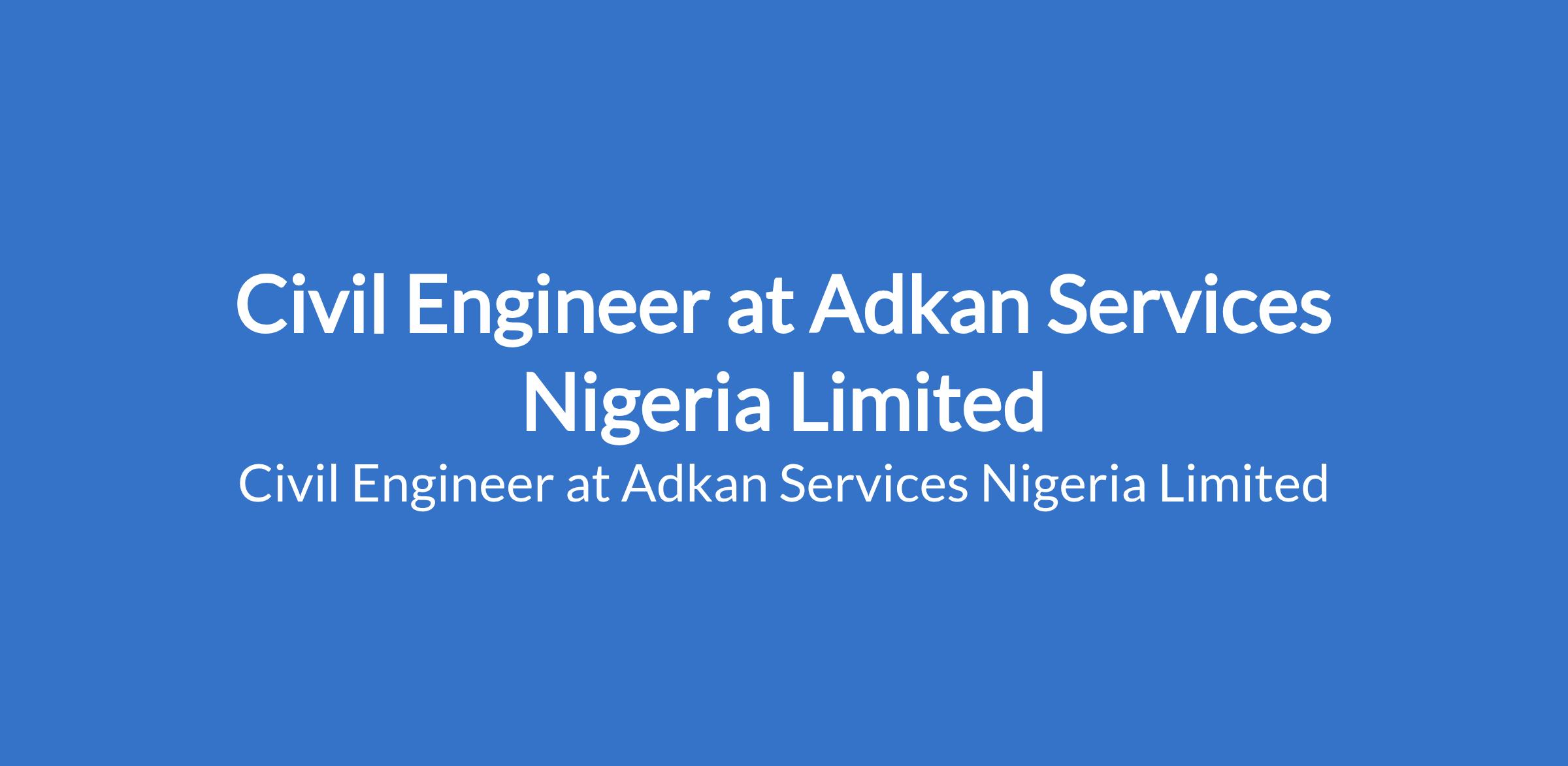 Adkan Services Nigeria Limited is recruiting to fill the position of: Civil Engineer. The position is located in Abuja (FCT). Interested candidates should possess a Bachelors Degree in Civil Engineering or related fields (a Master's Degree is an added advantage) with 35 years of proven work experience in civil engineering and construction projects.