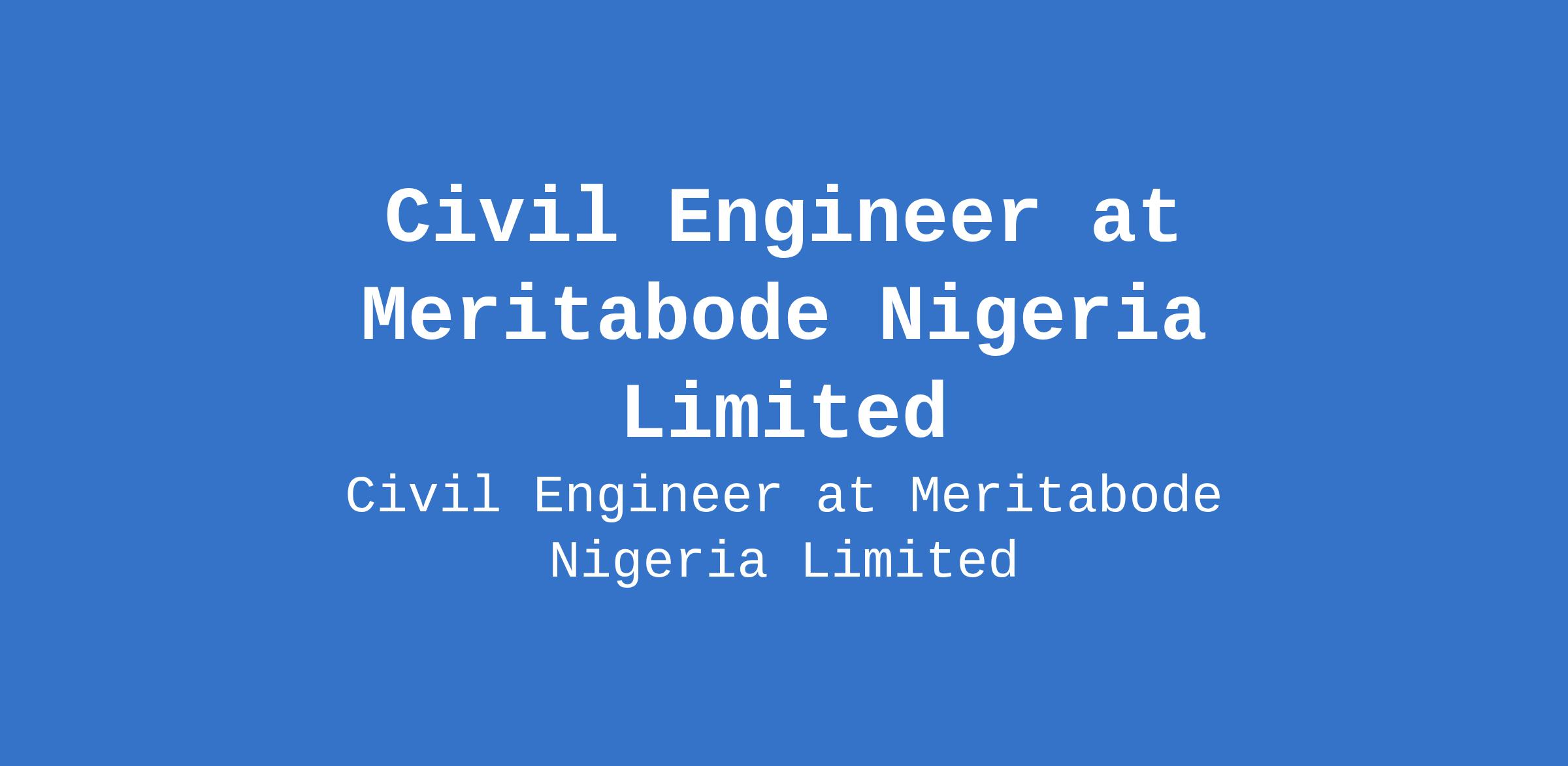 Meritabode Nigeria Limited is recruiting to fill the position of: Civil Engineer. The position is located in Opebi, Ikeja - Lagos State. Interested candidates should possess relevant qualifications with experience and applicants must reside on the Mainland, preferably around Ikeja and its environs.
