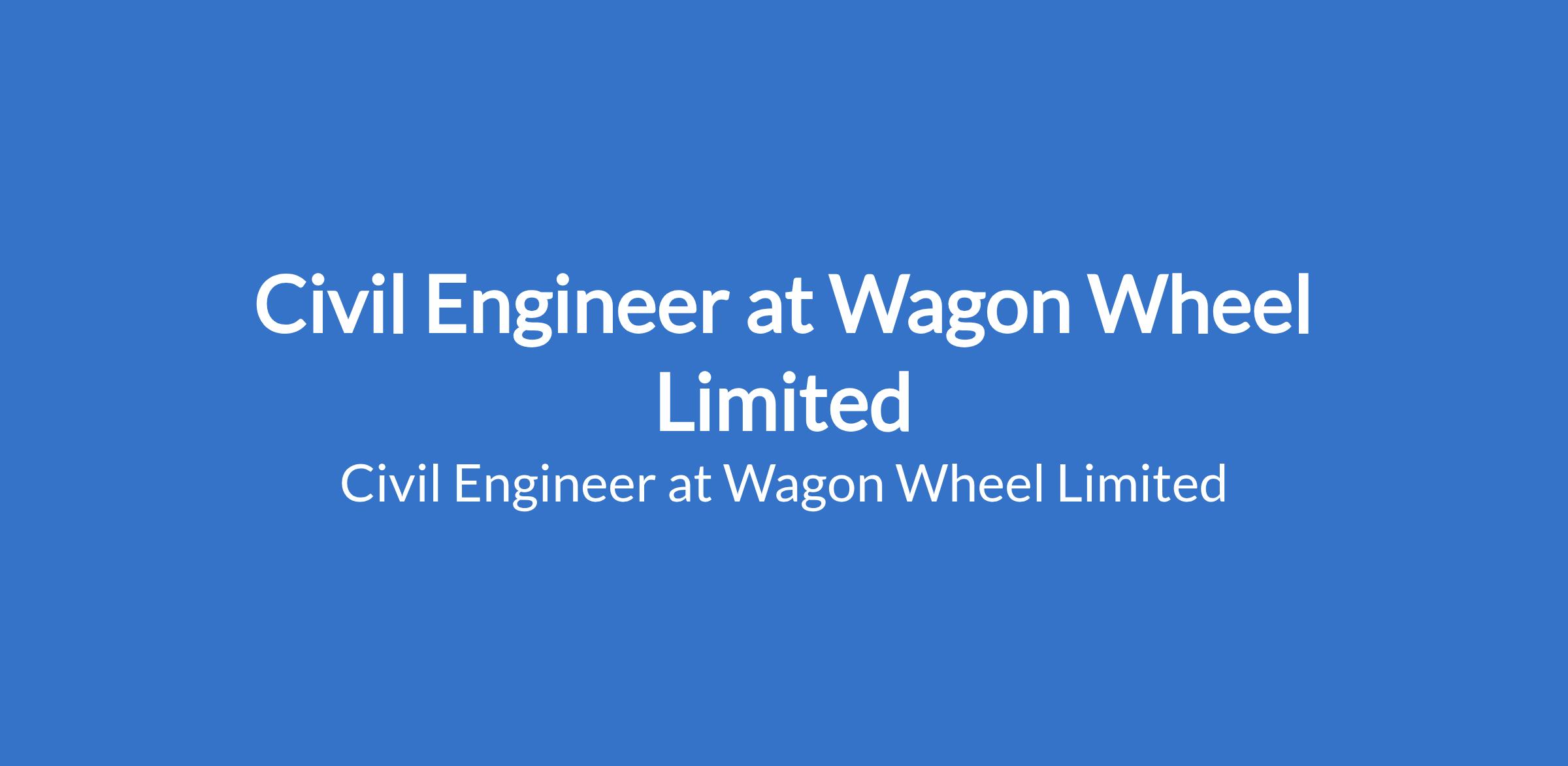 Wagon Wheel Limited is recruiting to fill the position of: Civil Engineer. The position is located in Utako, Abuja (FCT). Interested candidates should possess a Bachelor's Degree in Civil Engineering or a related field; relevant certifications are a plus.