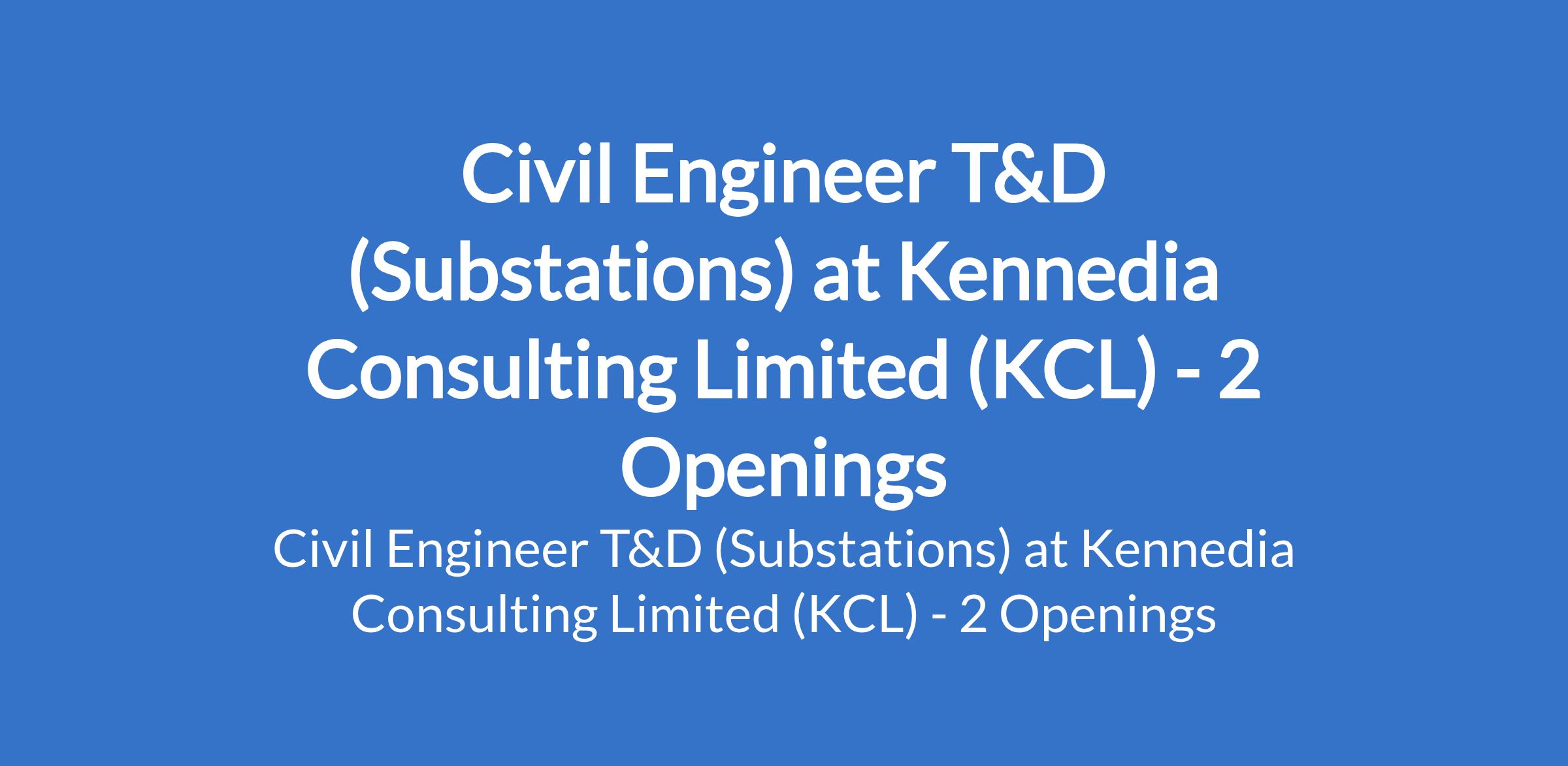 Kennedia Consulting Limited (KCL) is recruiting to fill the position of: Civil Engineer T&D (Substations). The position is located in Lagos and Akwa Ibom States. Interested candidates should possess a Bachelors Degree or HND in Civil Engineering with 710 years of experience in high-voltage substation civil works, particularly 33kV, 132kV, and 330kV GIS/AIS projects.