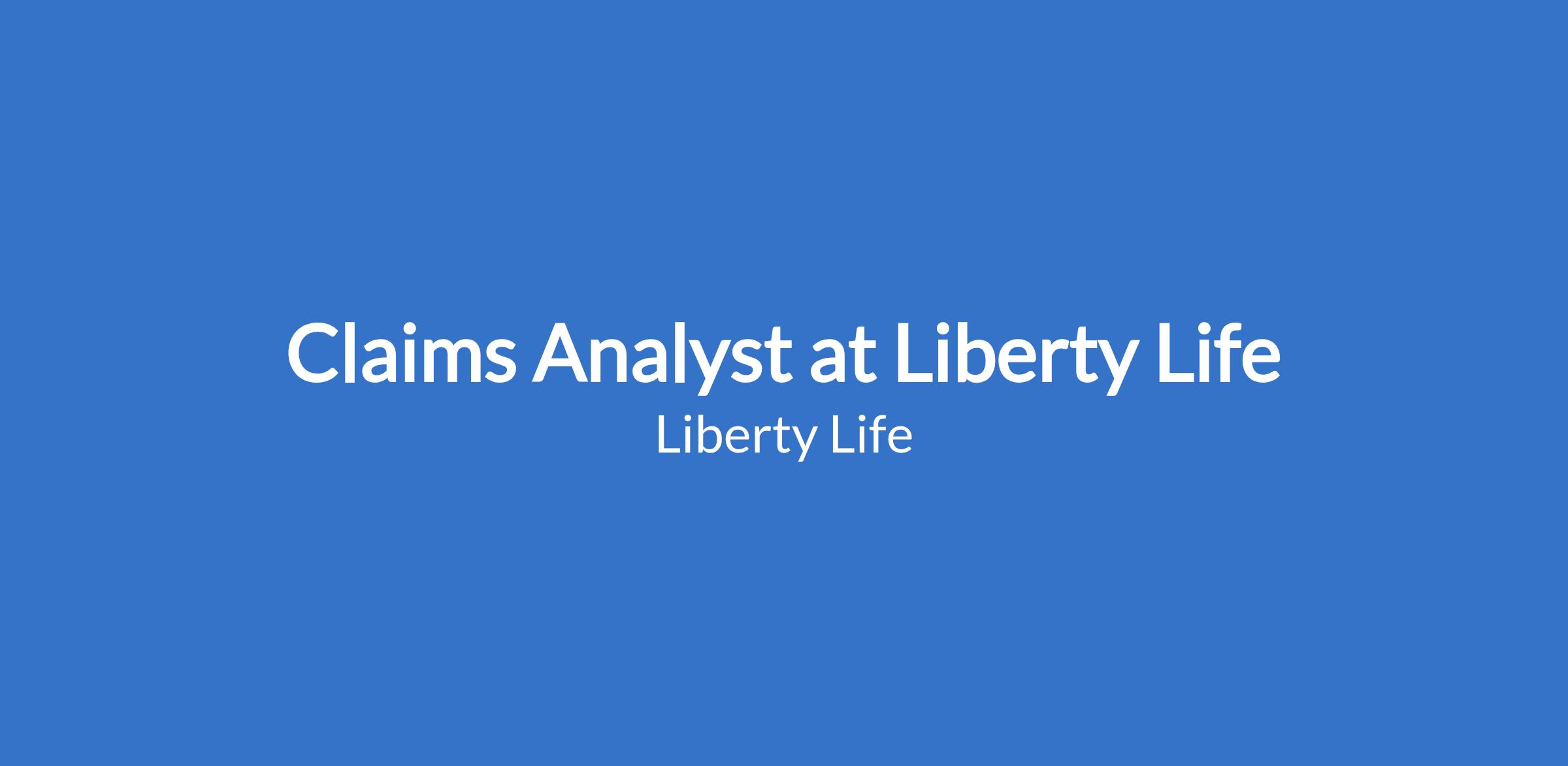 The purpose of the position is to undertake retail and corporate claims processing to ensure timely settlement of claims within the stipulated Liberty Life guidelines on claims management.