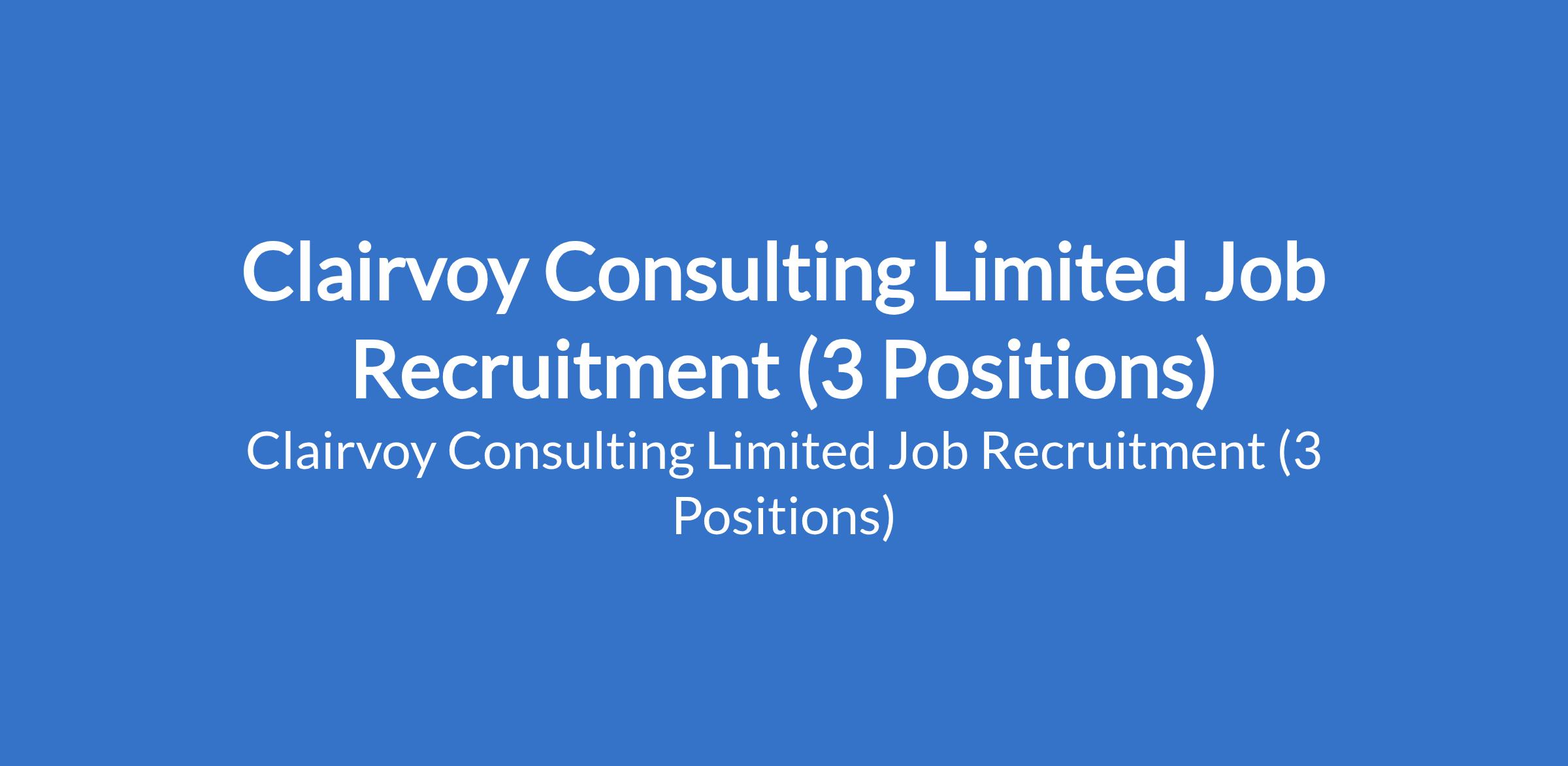 Clairvoy Consulting Limited Job Recruitment (3 Positions)