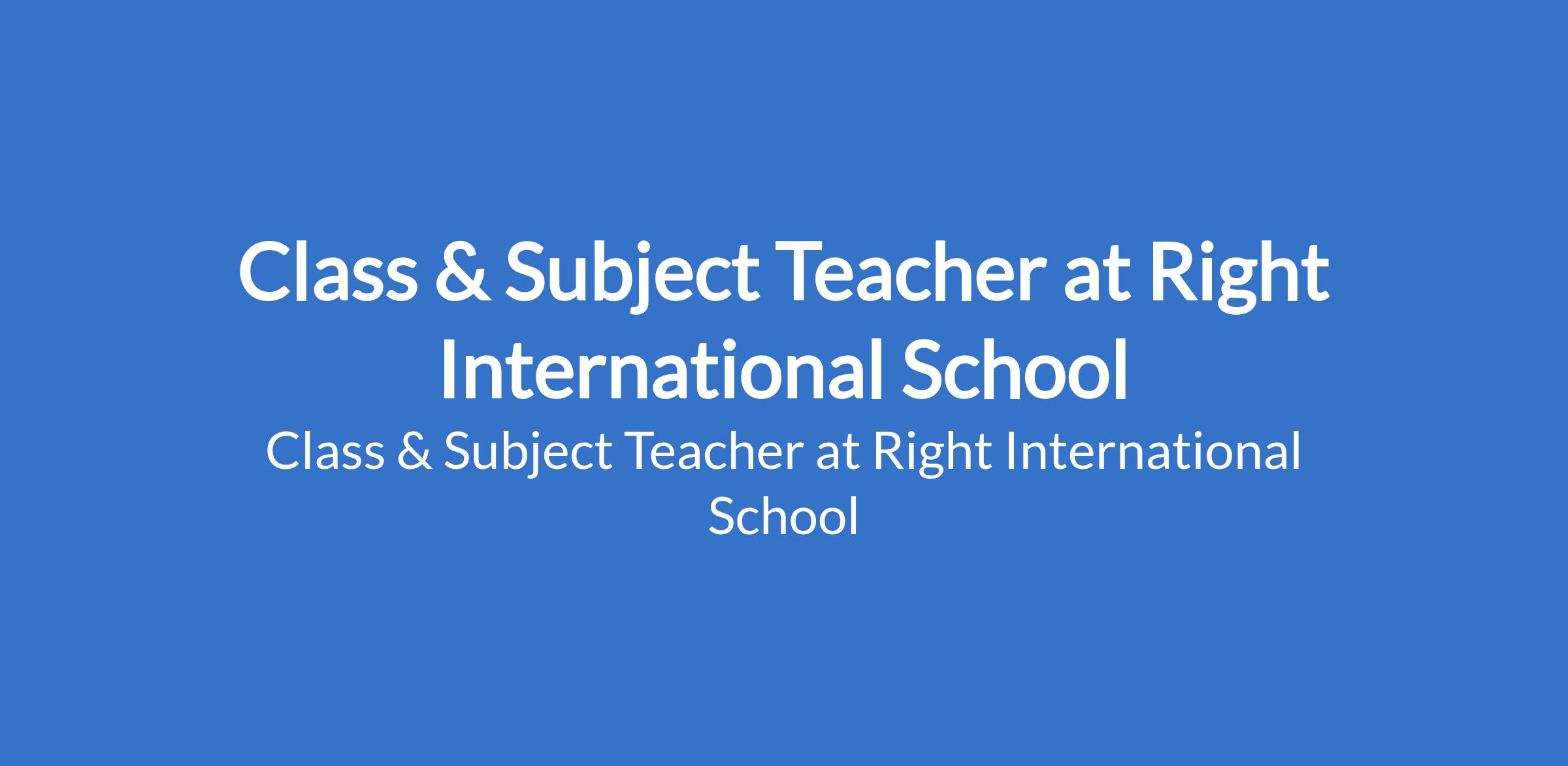 Class & Subject Teacher at Right International School