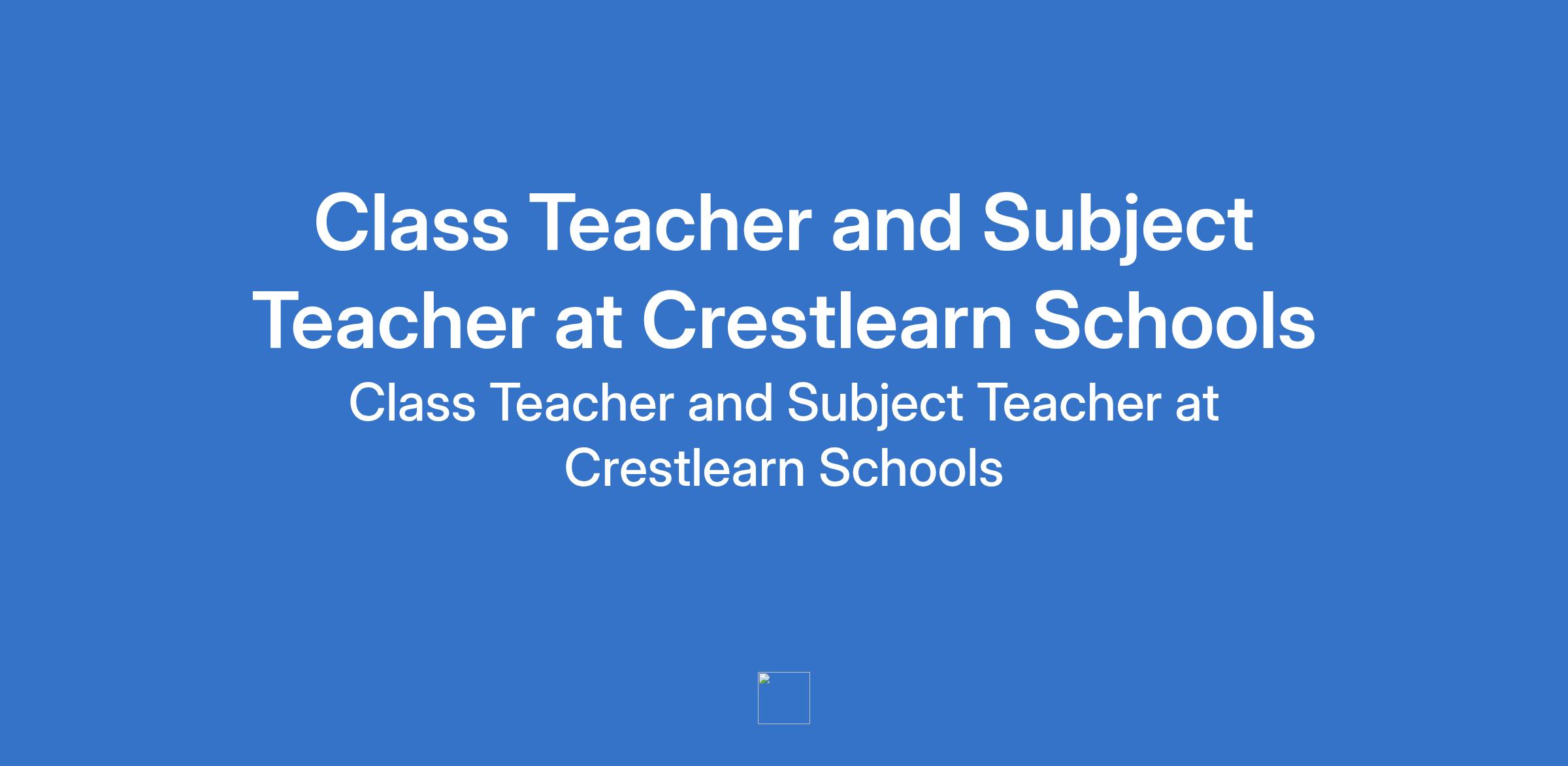 Class Teacher and Subject Teacher at Crestlearn Schools