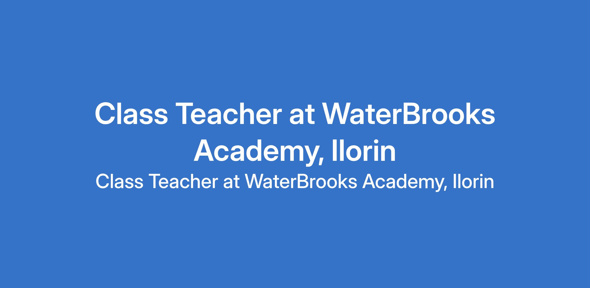 WaterBrooks Academy, Ilorin is recruiting to fill the position of: Class Teacher. The position is located in Ilorin, Kwara State. Salary: N43,000 N60,000 / month. Interested candidates should possess a Bachelor's Degree, HND, NCE or OND with 1 - 5 years experience.