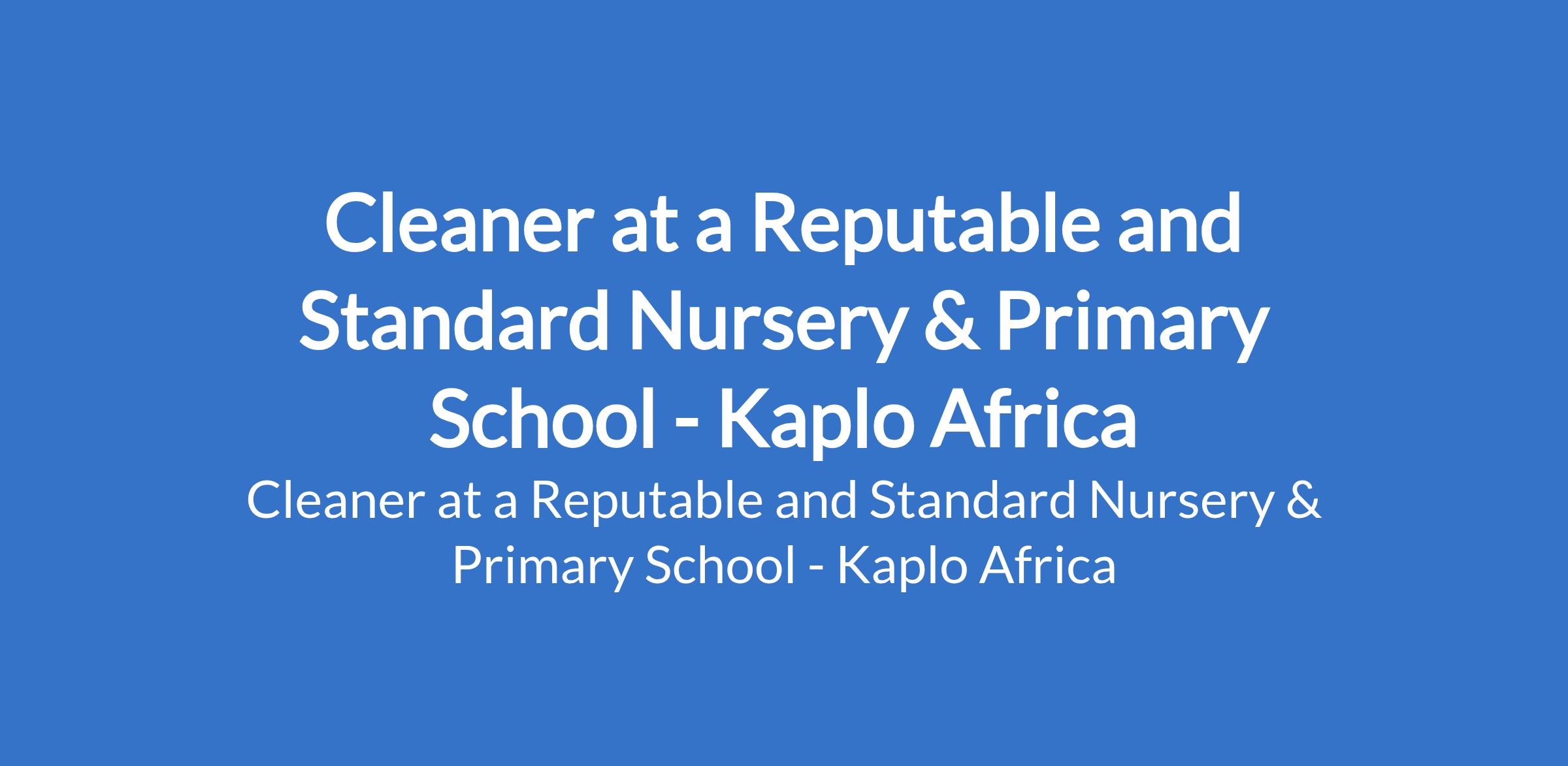 Kaplo Africa - Our client, a reputable and standard Nursery & Primary School is recruiting to fill the position of: Cleaner. The position is located in Abeokuta, Ogun State. Salary: N40,000 / month. Interested candidates should possess a minimum of an SSCE or equivalent with 1 2 years of experience in cleaning services (school experience is an advantage).