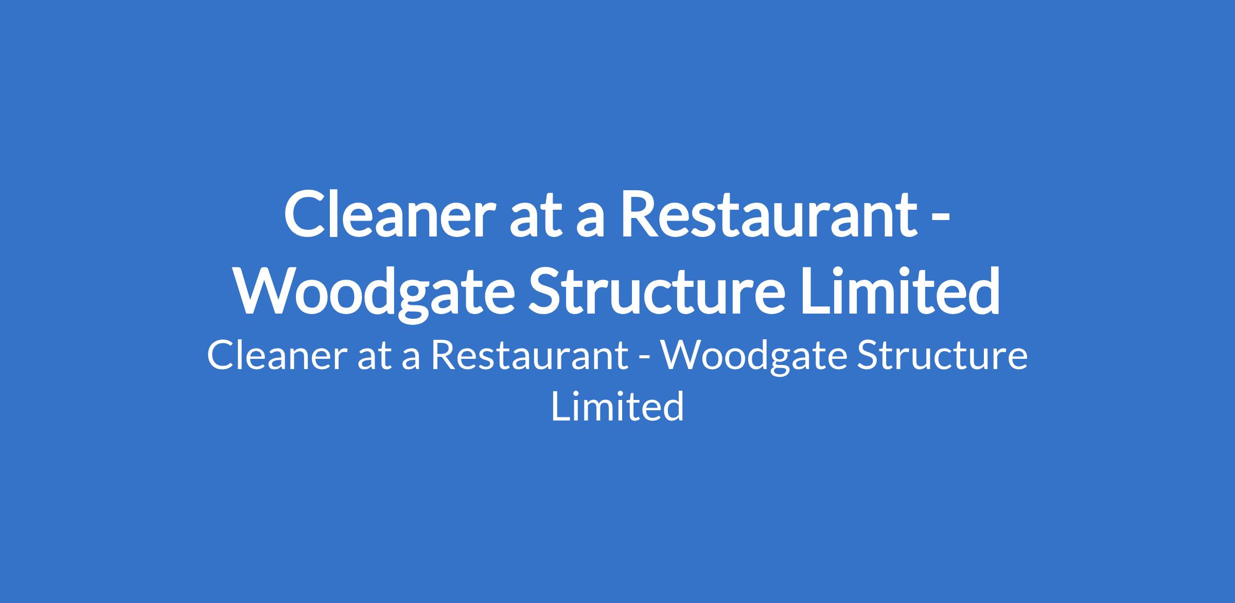 Cleaner at a Restaurant - Woodgate Structure Limited
