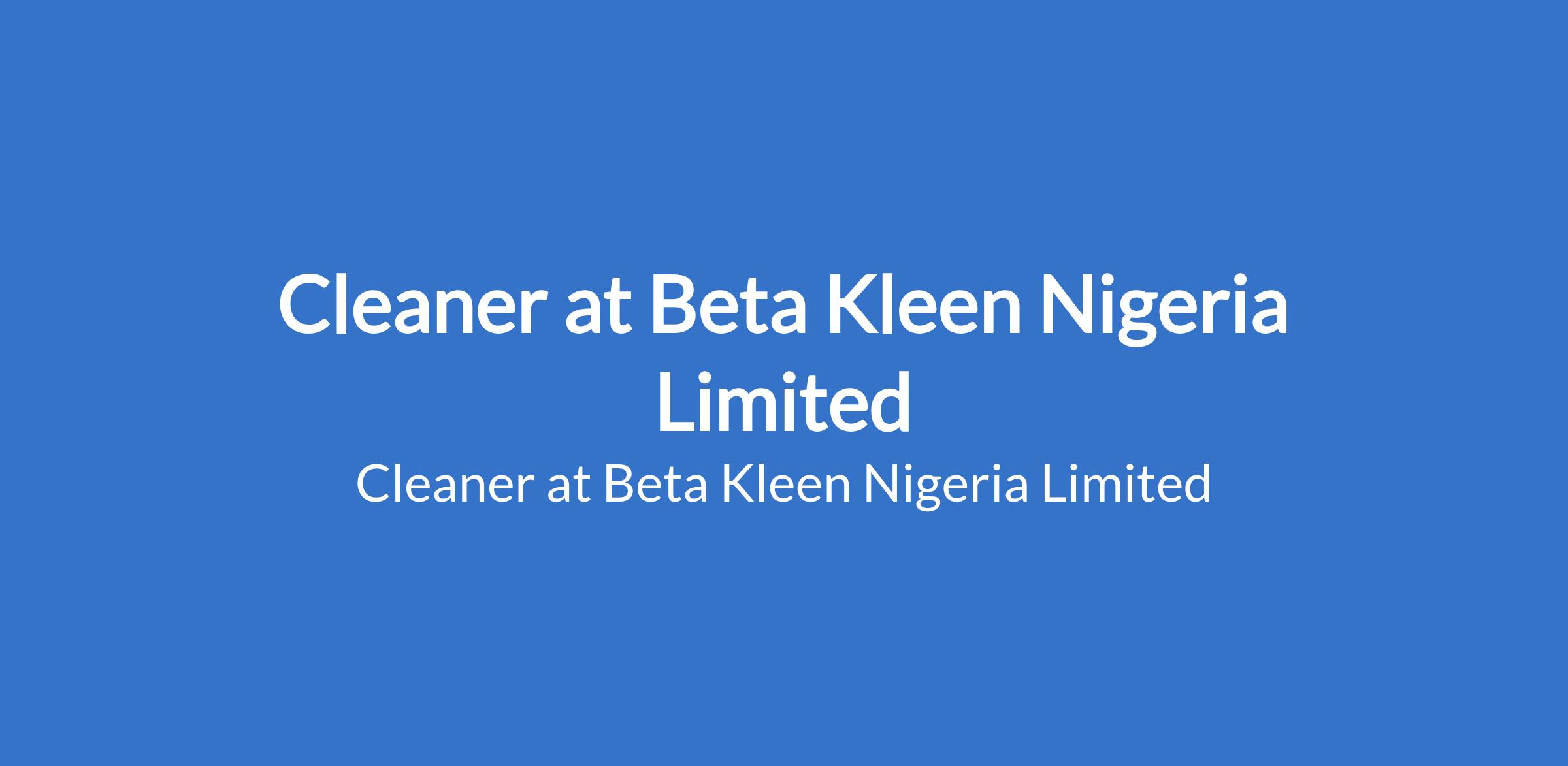 Cleaner at Beta Kleen Nigeria Limited