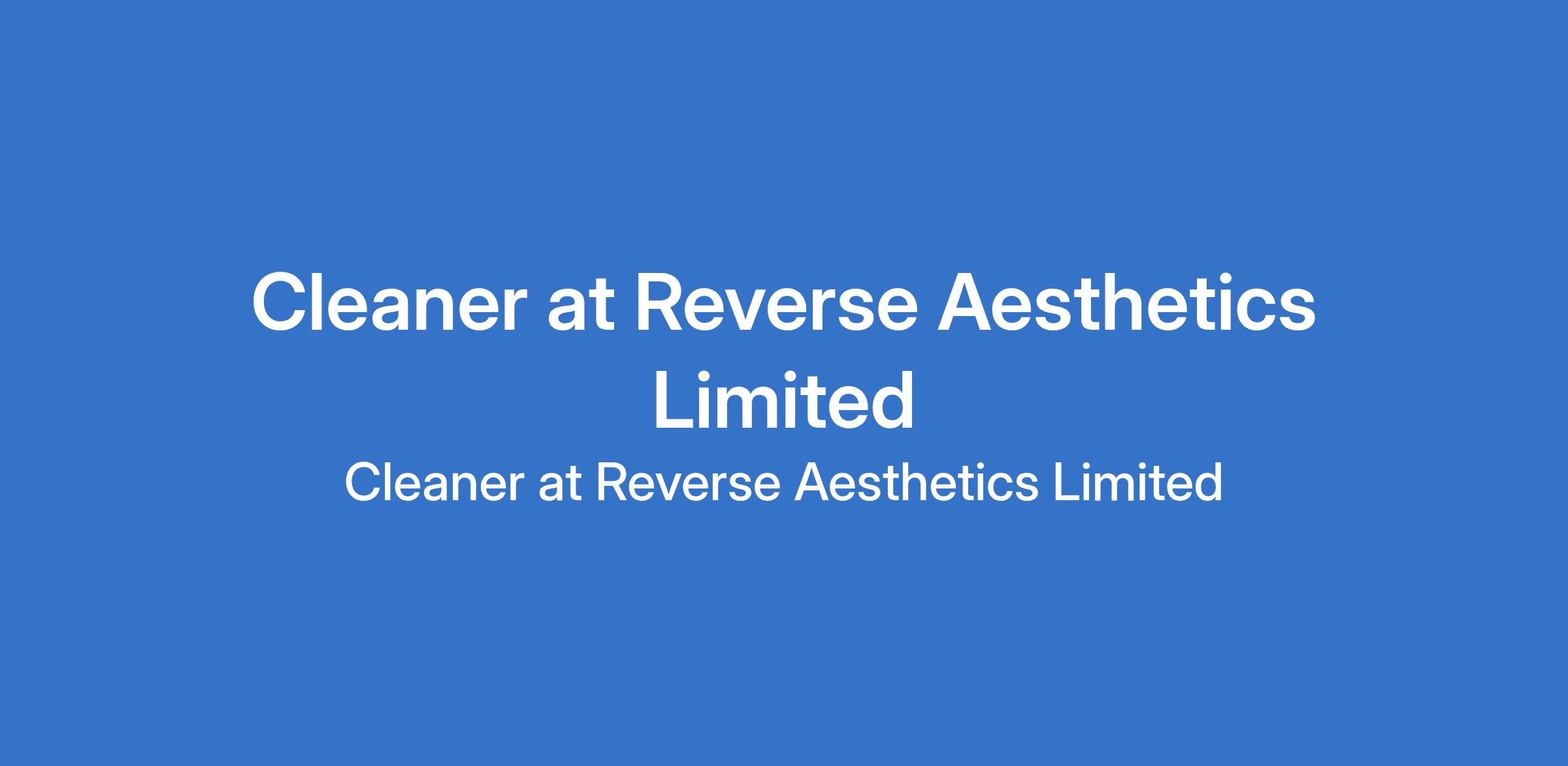 Cleaner at Reverse Aesthetics Limited