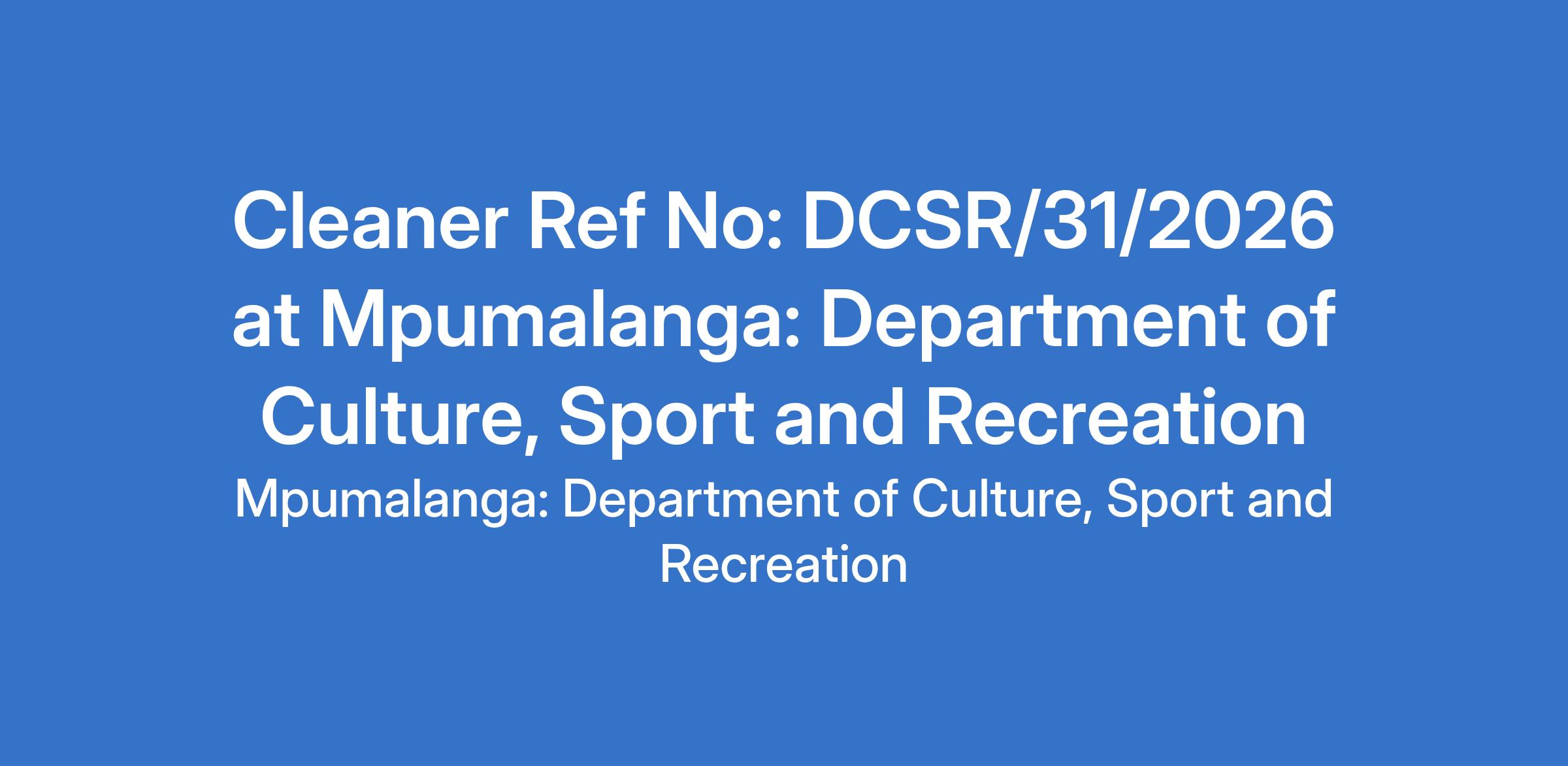 Cleaner Ref No: DCSR/31/2026 at Mpumalanga: Department of Culture, Sport and Recreation