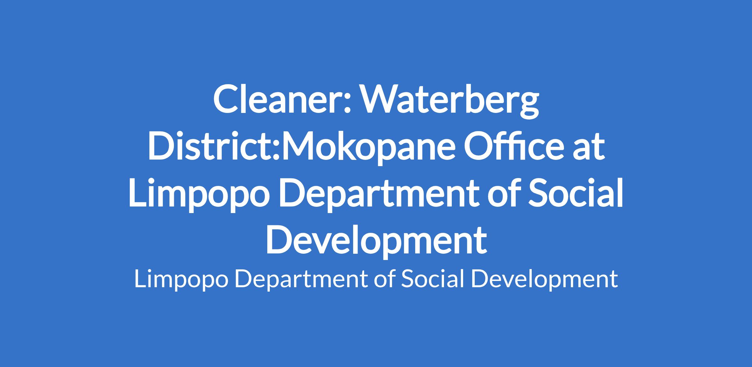 Cleaner: Waterberg District:Mokopane Office at Limpopo Department of Social Development