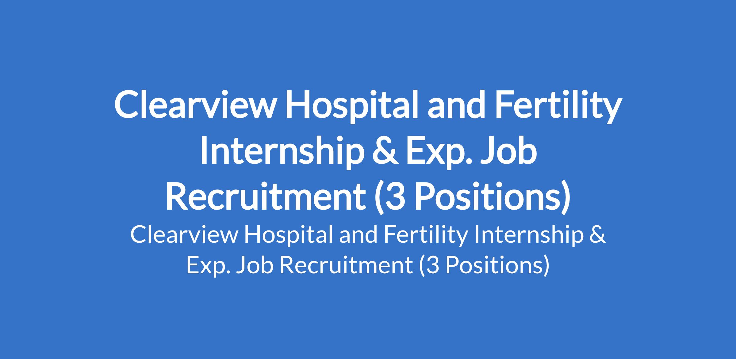 Clearview Hospital and Fertility Internship & Exp. Job Recruitment (3 Positions)