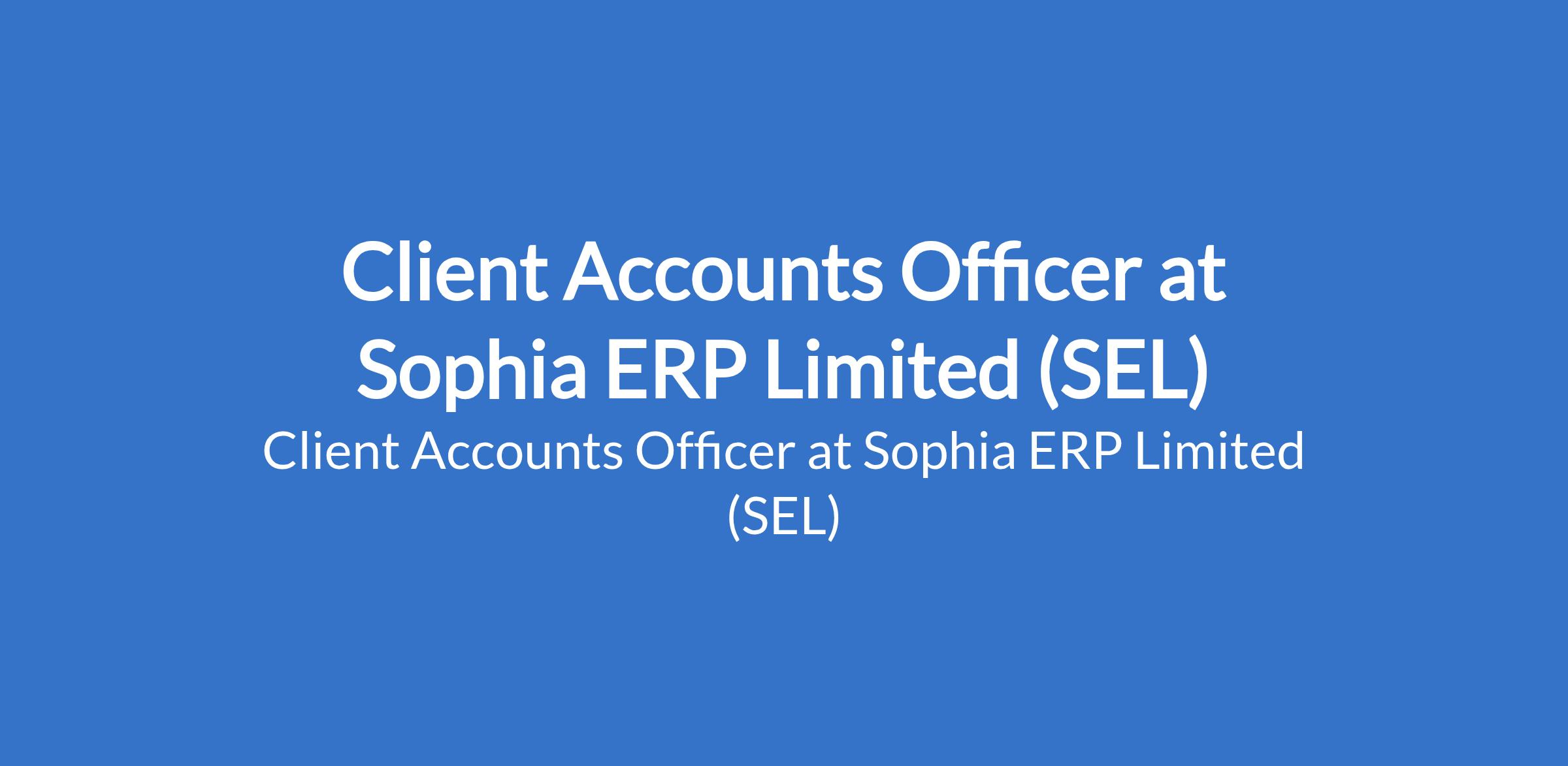 Sophia ERP Limited (SEL) is recruiting to fill the position of: Client Accounts Officer. The position is located in Ojodu, Lagos State. Salary: N150,000 - N250,000 / month. Interested candidates should possess a B.Sc. in Accounting or Economics with a minimum 2 years of working experience in a similar role