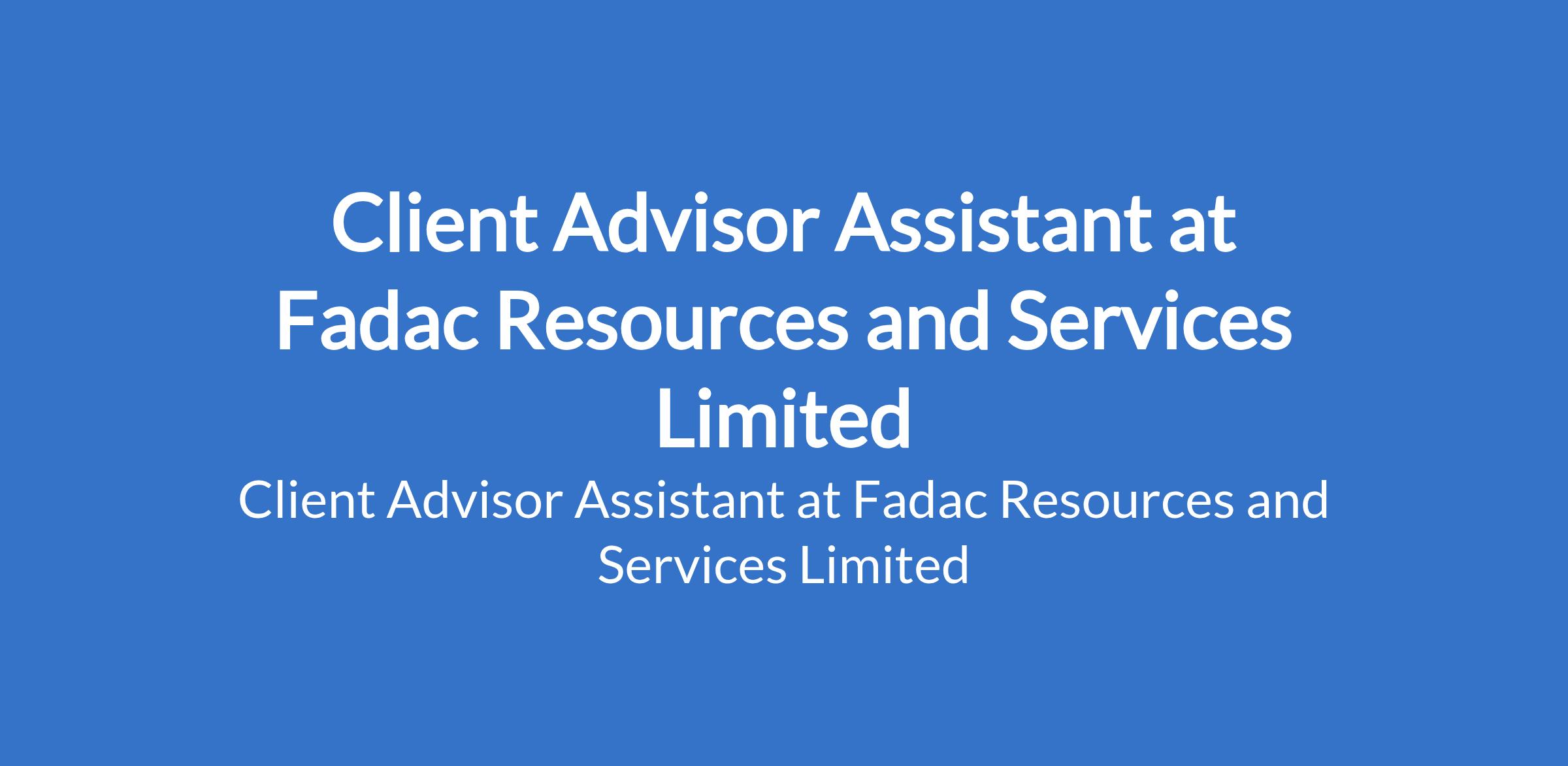 Fadac Resources and Services Limited is recruiting to fill the position of: Client Advisor Assistant. The position is located in Ikoyi, Lagos State. Interested candidates should possess a B.Sc Degree in Finance, Economics, Accounting, Business or related field with 1 4 years experience in wealth management, private banking, asset management, family office or financial services.