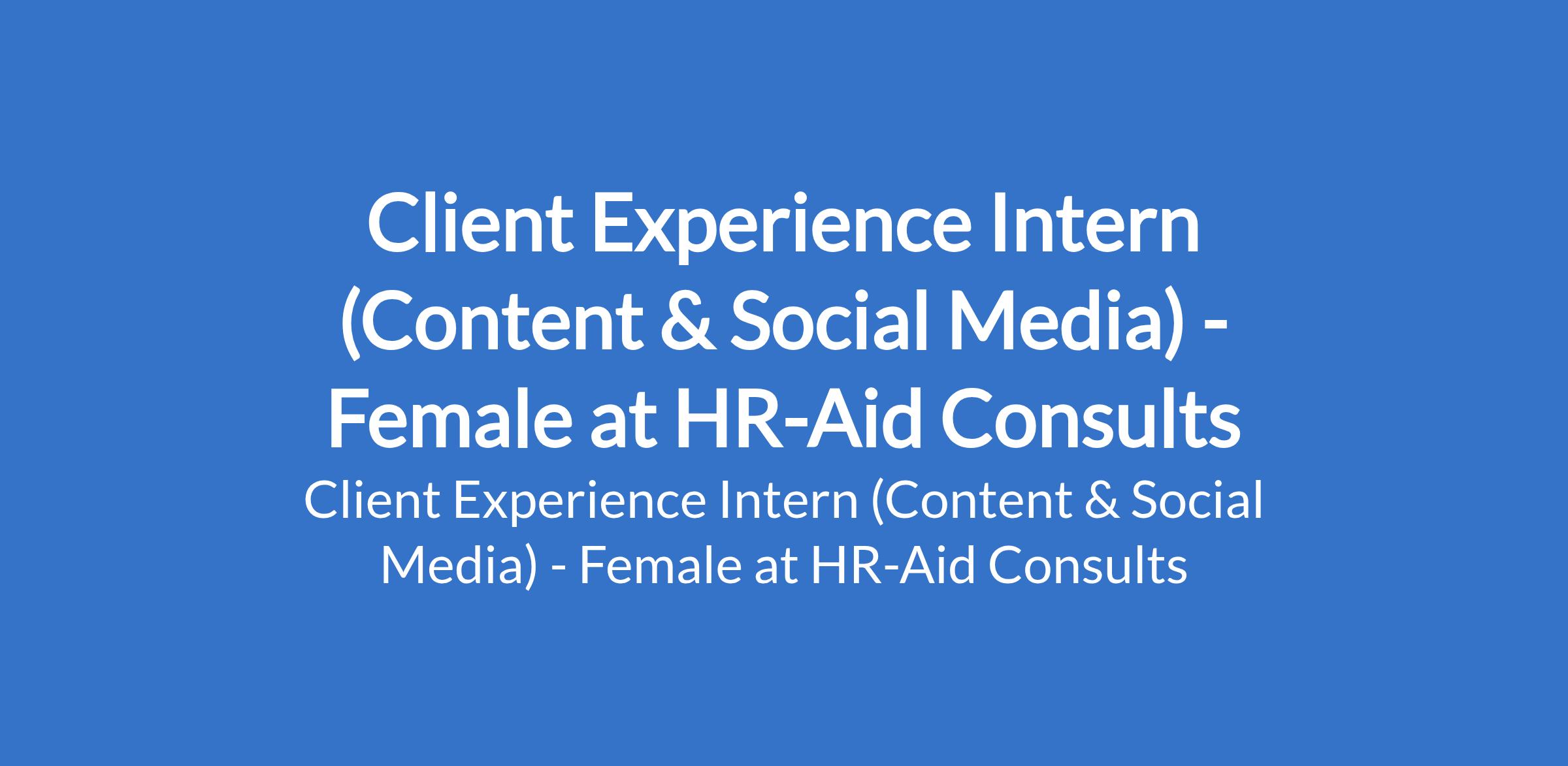 HR-Aid Consults is recruiting to fill the position of: Client Experience Intern (Content & Social Media) - Female. The position is located in Ago Palace Way, Okota - Lagos State. Salary: N80,000 N90,000 per month. Interested candidates should possess relevant qualifications with experience in social media management and content creation.
