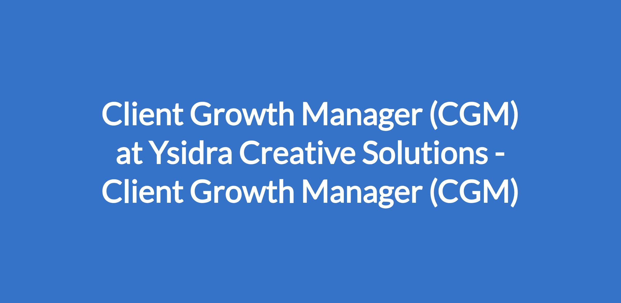 Client Growth Manager (CGM) at Ysidra Creative Solutions - Client Growth Manager (CGM)