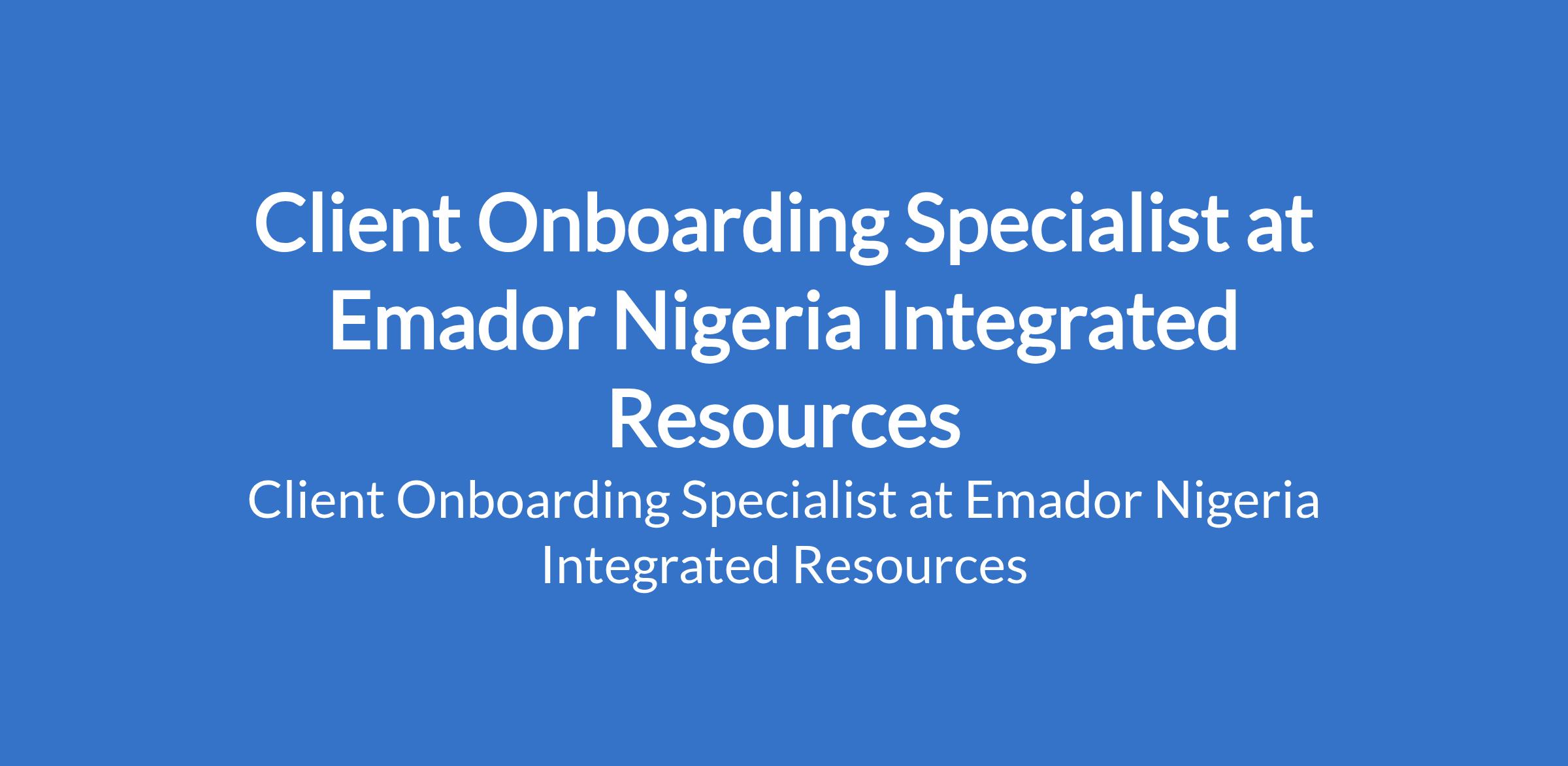Emador Nigeria Integrated Resources is recruiting to fill the position of: Client Onboarding Specialist. The position is located in Ikeja, Lagos State. Salary: N100,000 - N150,000 per month. Interested candidates should possess a relevant qualification with work experience.