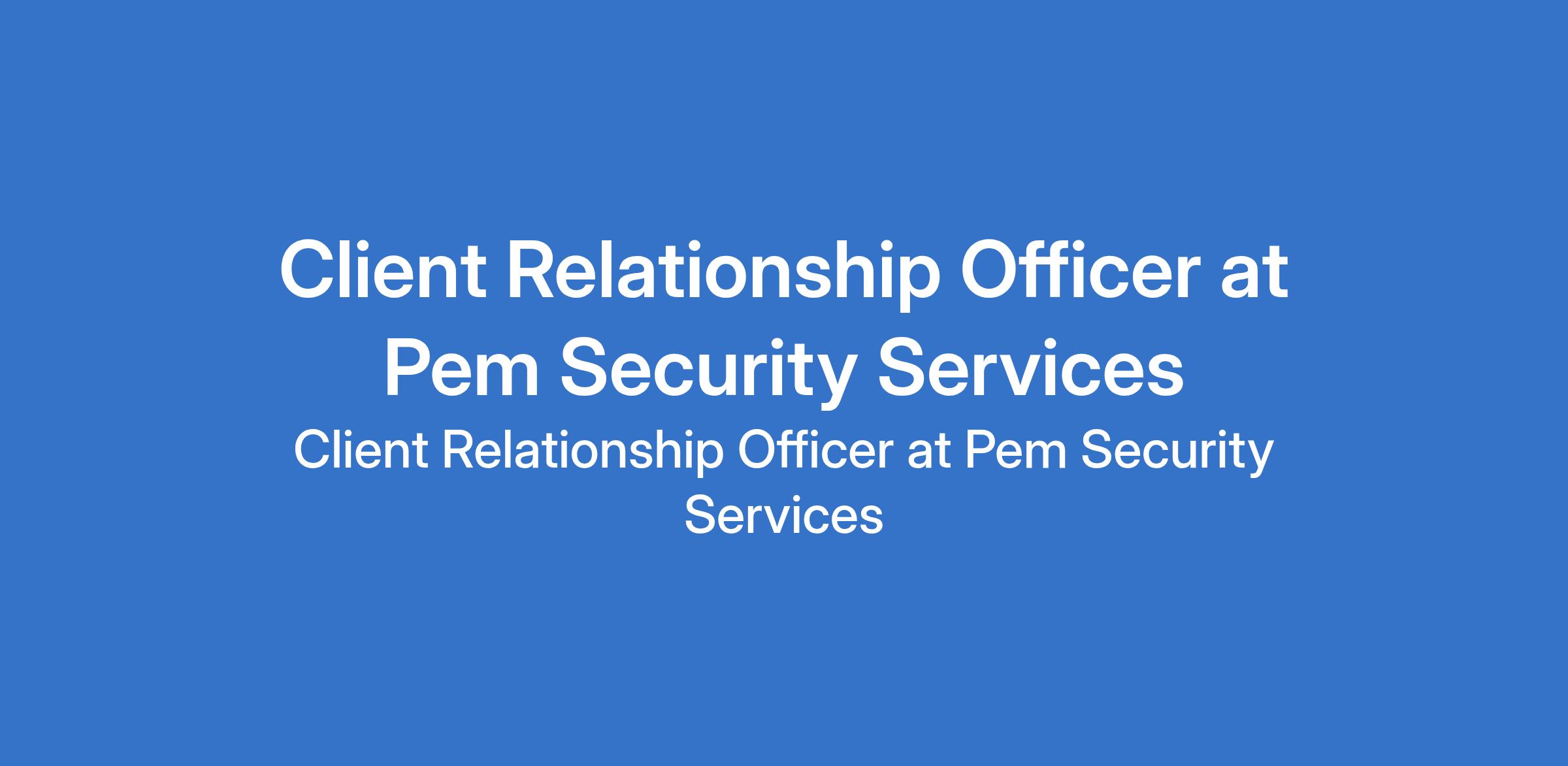 Pem Security Services is recruiting to fill the position of: Client Relationship Officer. The position is located in Umuahia, Abia, State. Salary: N80,000 - N120,000 monthly. Interested candidates should possess a Bachelor's Degree in Communications, Public Relations, Business Administration, or a related field with proven experience in customer service or relationship management within the public relations or communications industry.